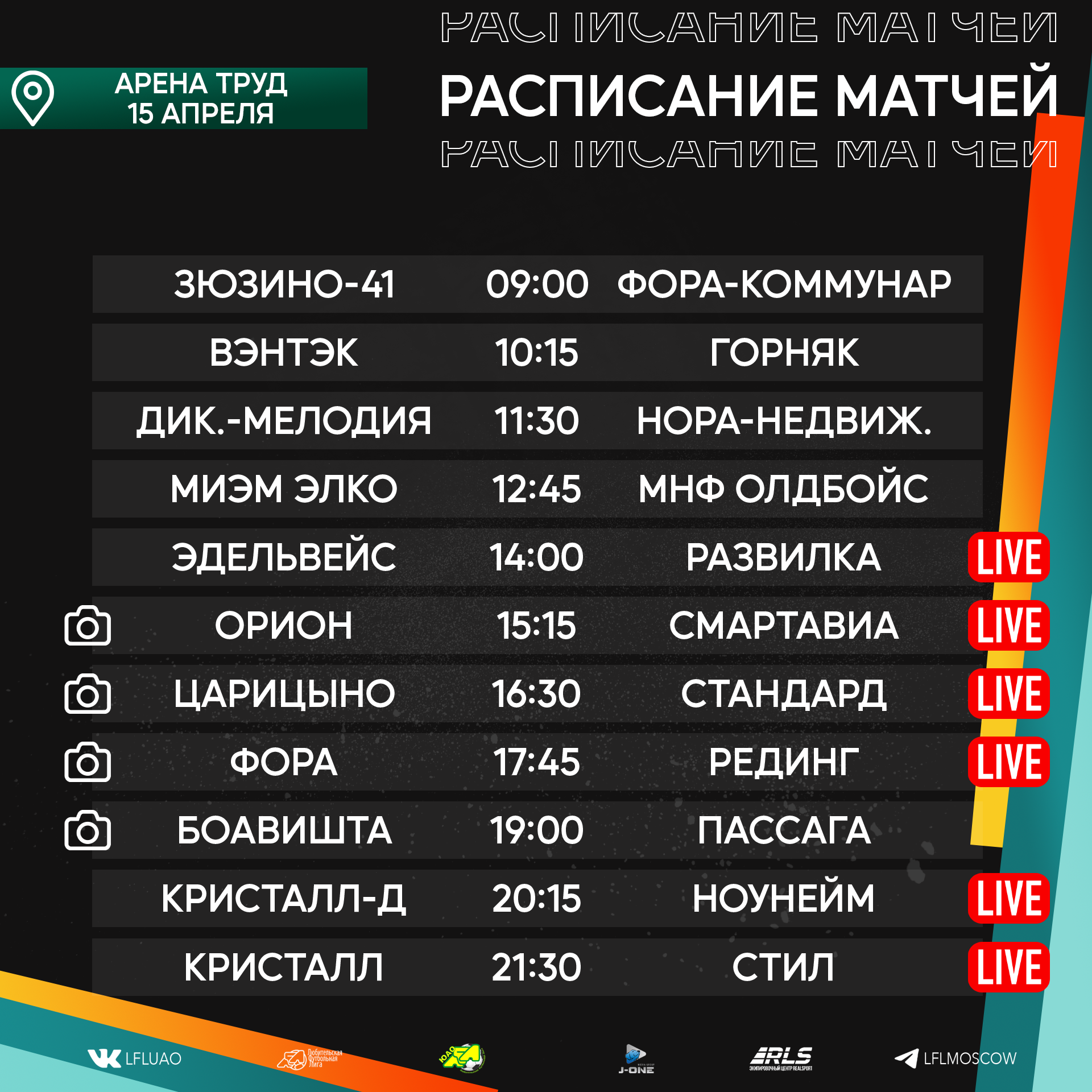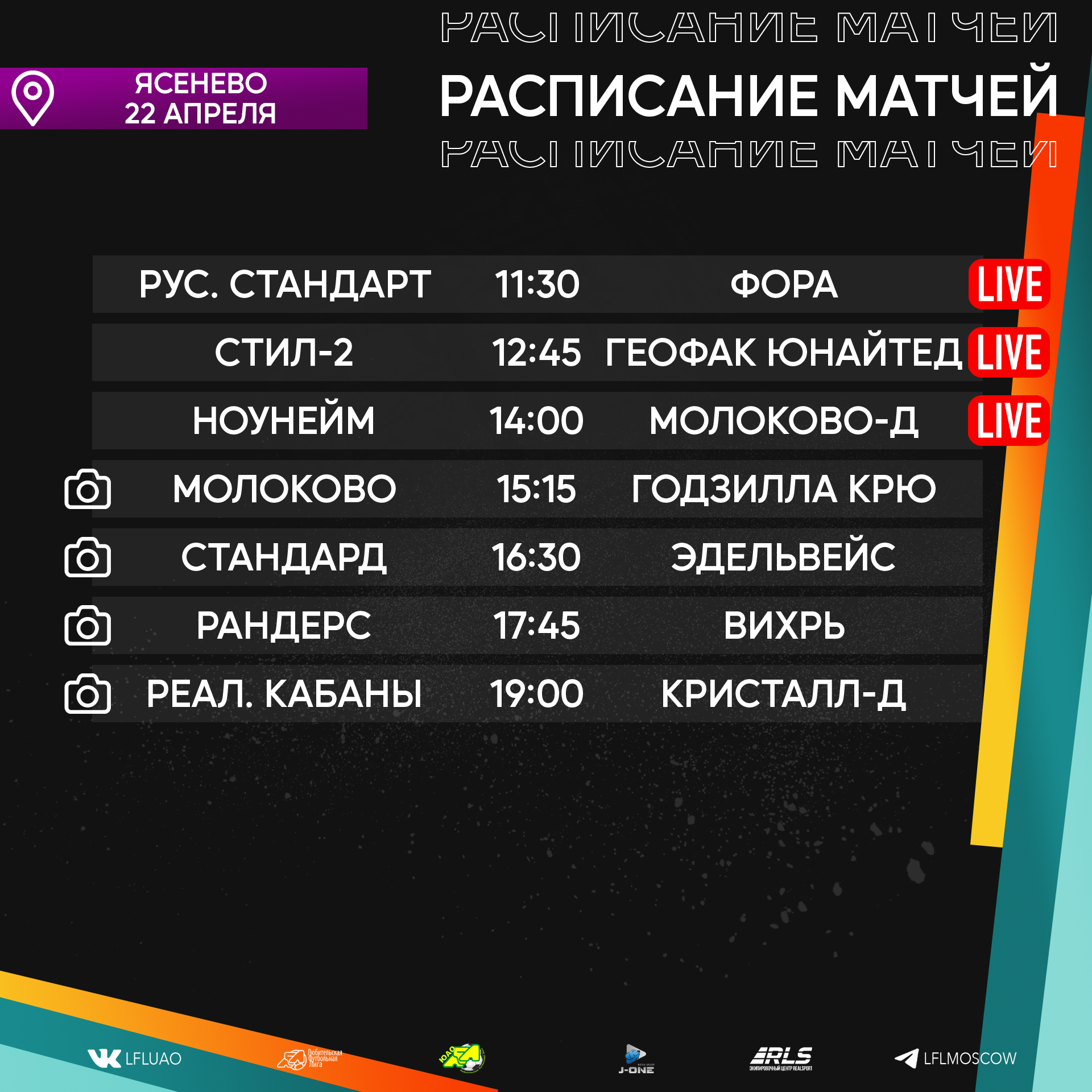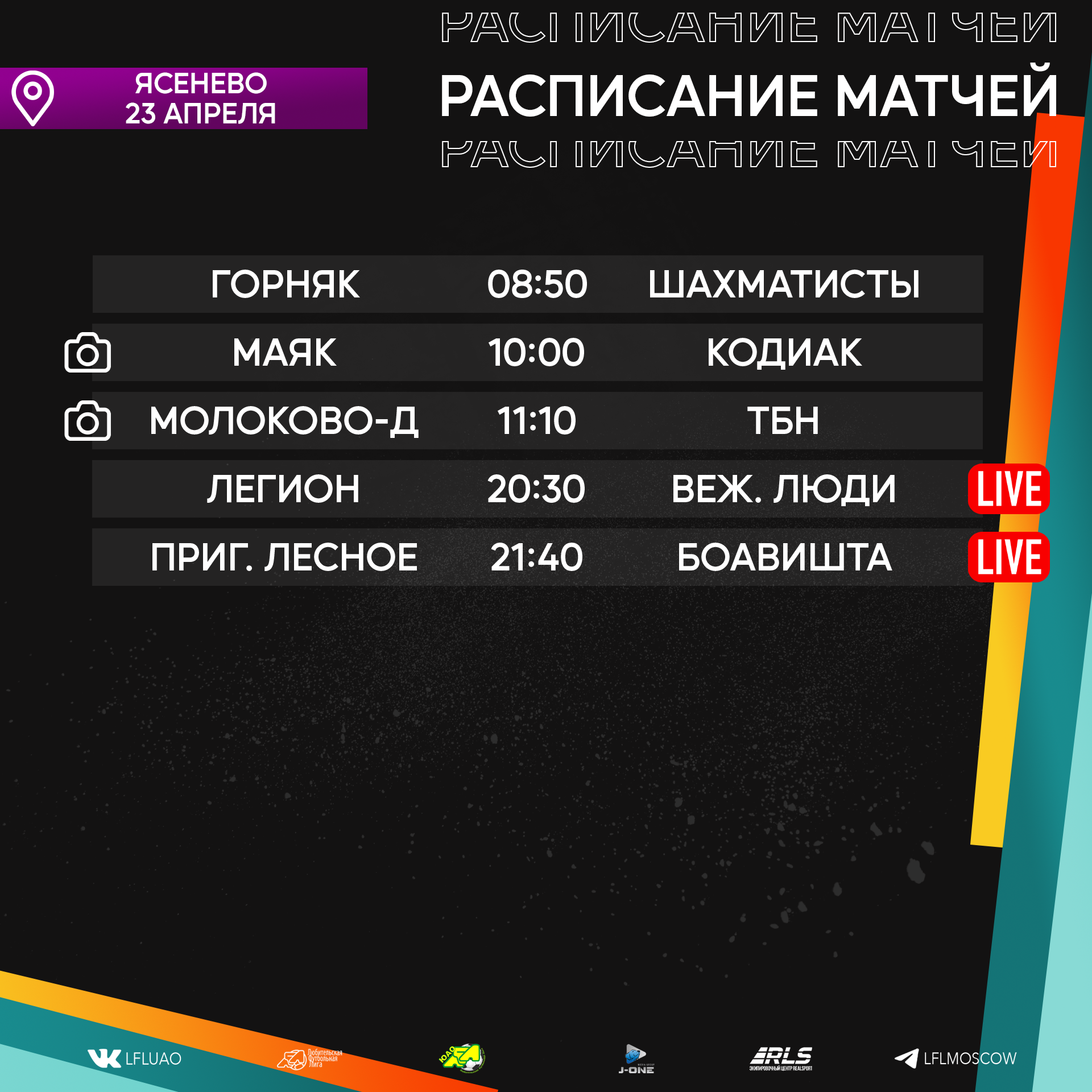 " ["external_link"]=> string(0) "" ["text"]=> string(1111) "Представляем вашему вниманию расписание медиа Южной лиги ЛФЛ на предстоящий футбольный уик-энд