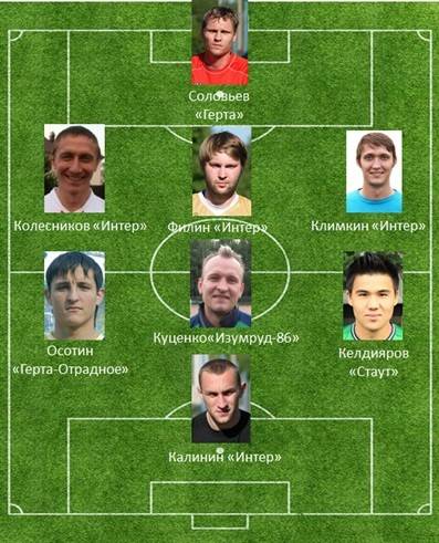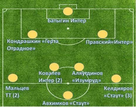 Детистов Антон ( Кайзер, , 0'); Московцев Павел (Кайзер, , 0'); Ермаков Павел ( Герта-Отрадное, , 0');Осотин Александр ( Герта-Отрадное, , 0');