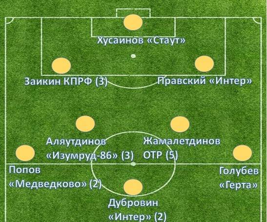 Тринитацкий Алексей (3); Жамалетдинов Ильнар (3); Мишин Алексей (1); Краубер Дмитрий (1); Скупейко Виктор (1);