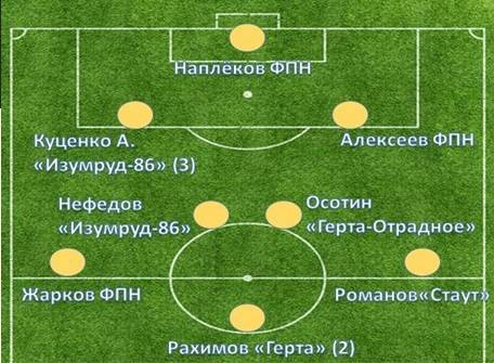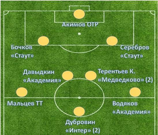 Не успел начаться второй тайм, а Водяков с подачи Давыдкина головой делает счет 1:3. Почти сразу новый гол, после сольного номера (затяжного дриблинга) отличился Тимур Давыдкин - 1:4. После этого момента "ГертаОтрадное" признала свое поражение и фактически бросила играть. "Академия" смогла довести счет забитых голов до 11 (мячи были забиты на любой вкус), пропустив лишь однажды от Игоря Куприна. Выдающиеся бомбардирские результаты показали два игрока "Академии". Иван Водяков забил восемь мячей, Тимур Давыдкин забил трижды и восемь раз ассистировал Ивану.
