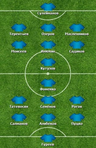 Стекачёв Андрей (вр); Долгов Роберт; Оналбаев Куаныш; Павлов Михаил; Антия Тимур; Голованов Иван; Тимофеев Михаил; Антия Зураб;