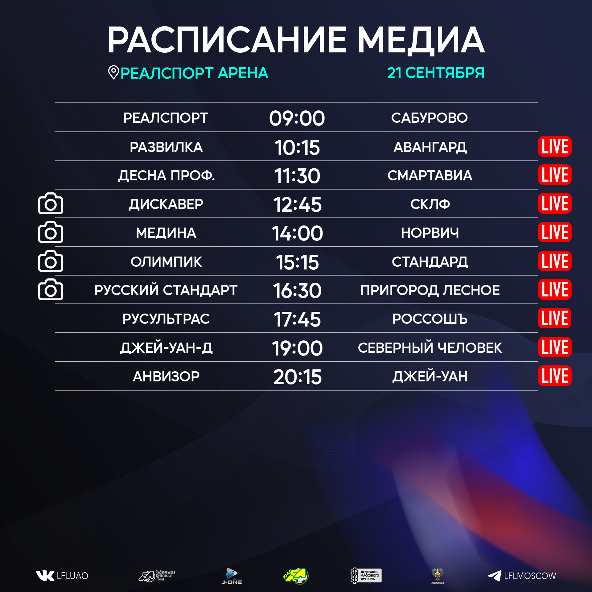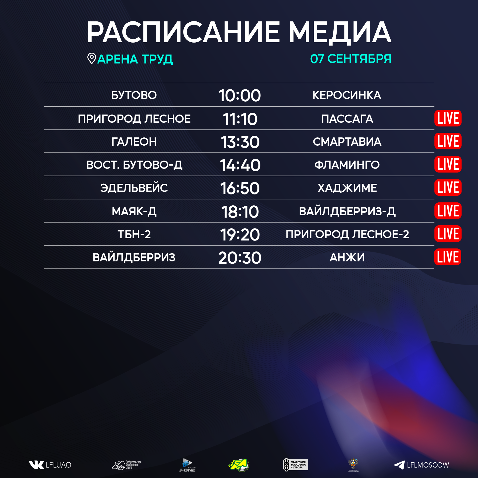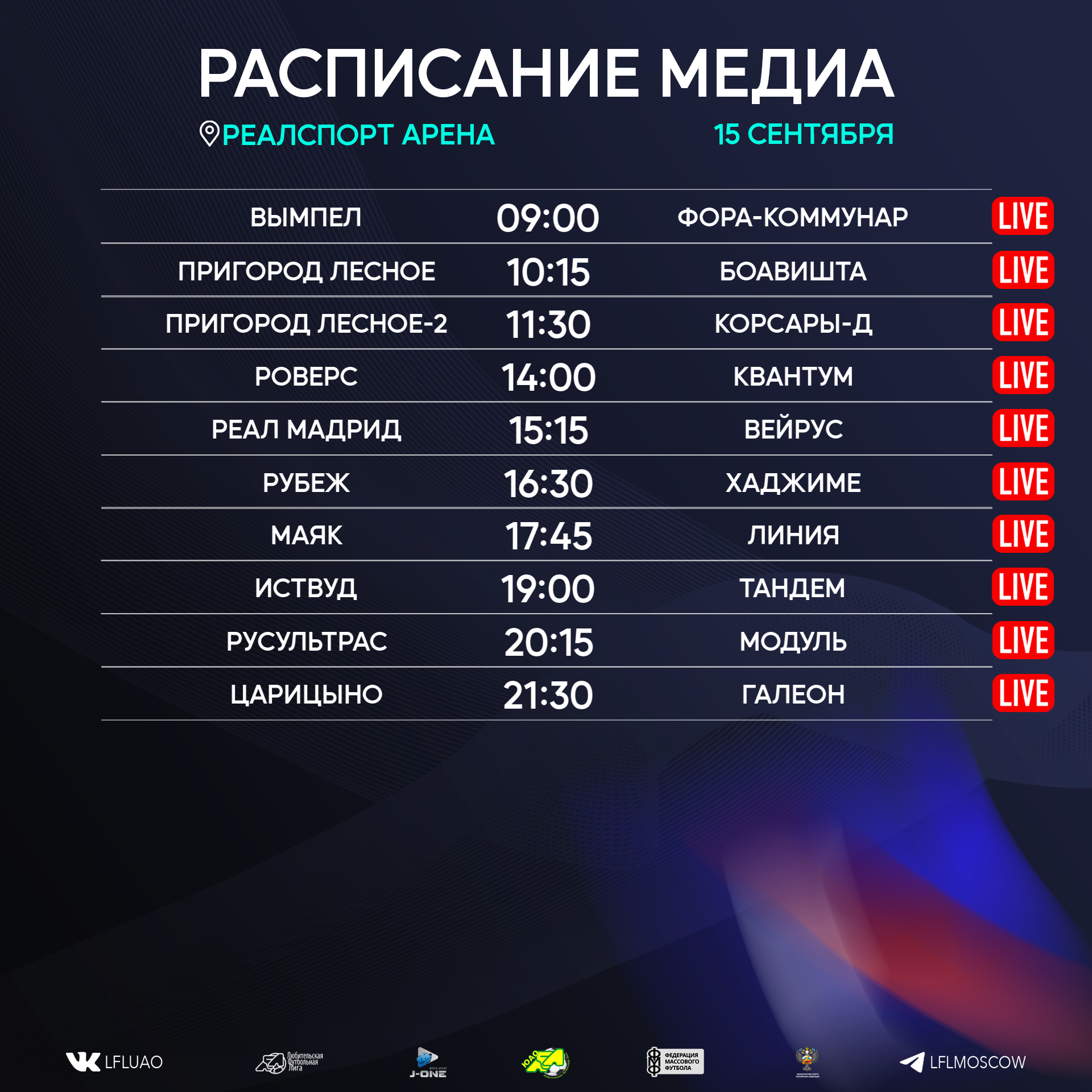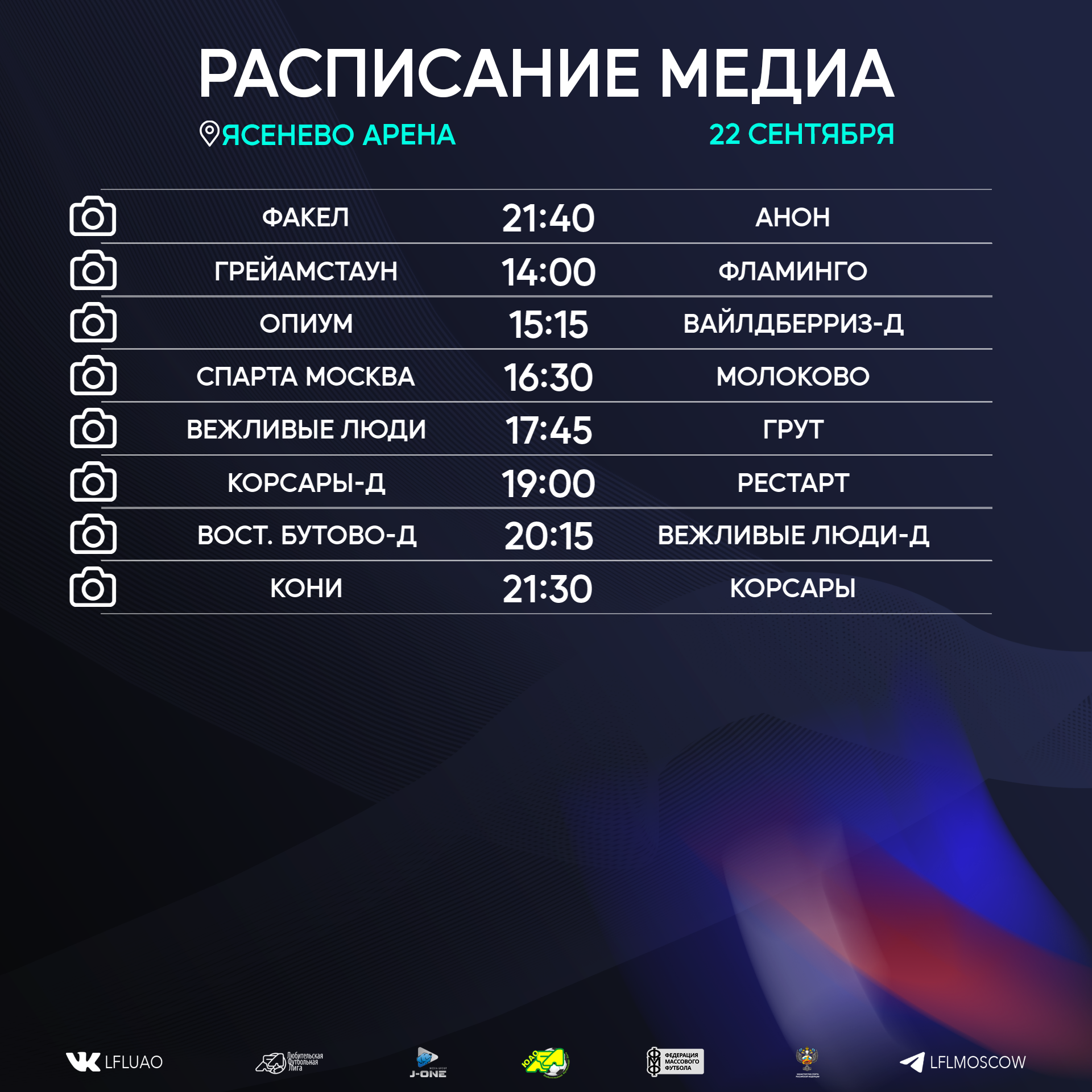 Представляем вашему вниманию расписание медиа Южной лиги ЛФЛ на предстоящий футбольный уик-энд