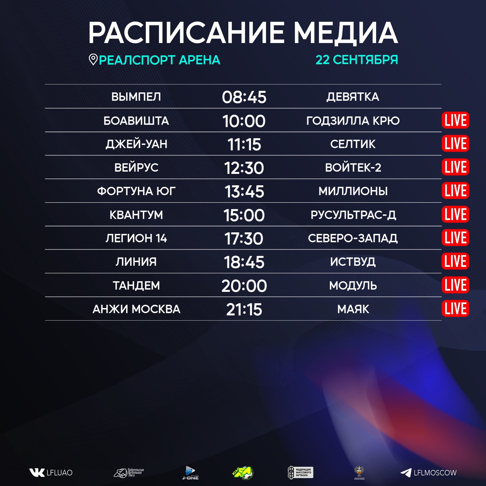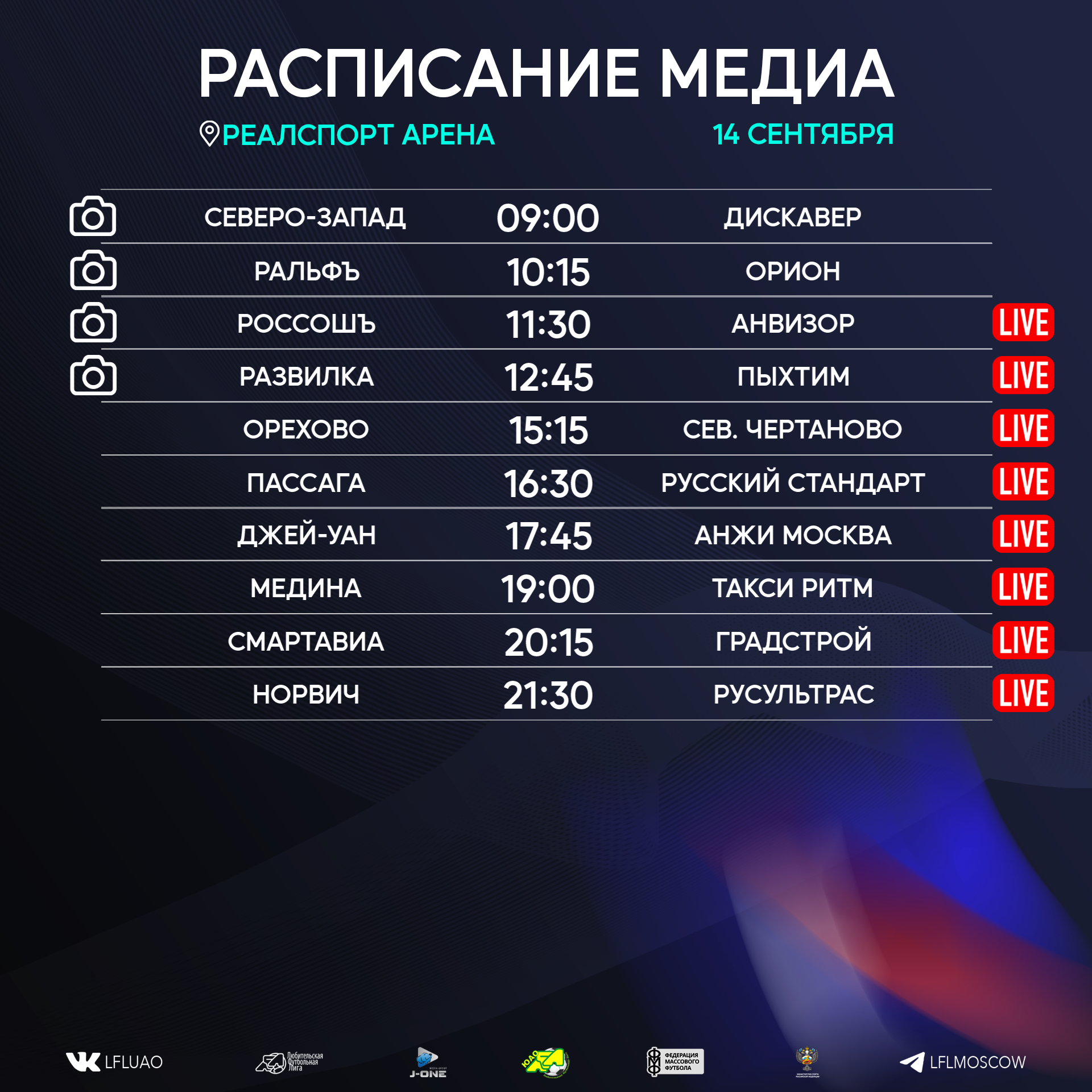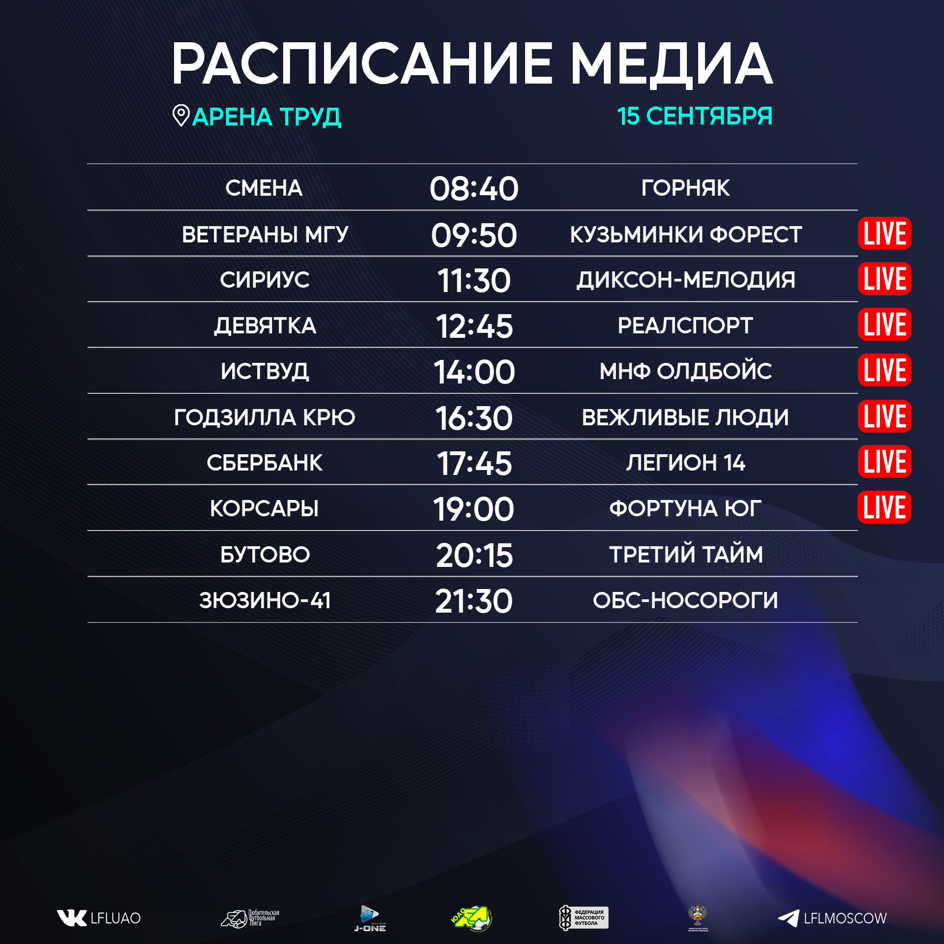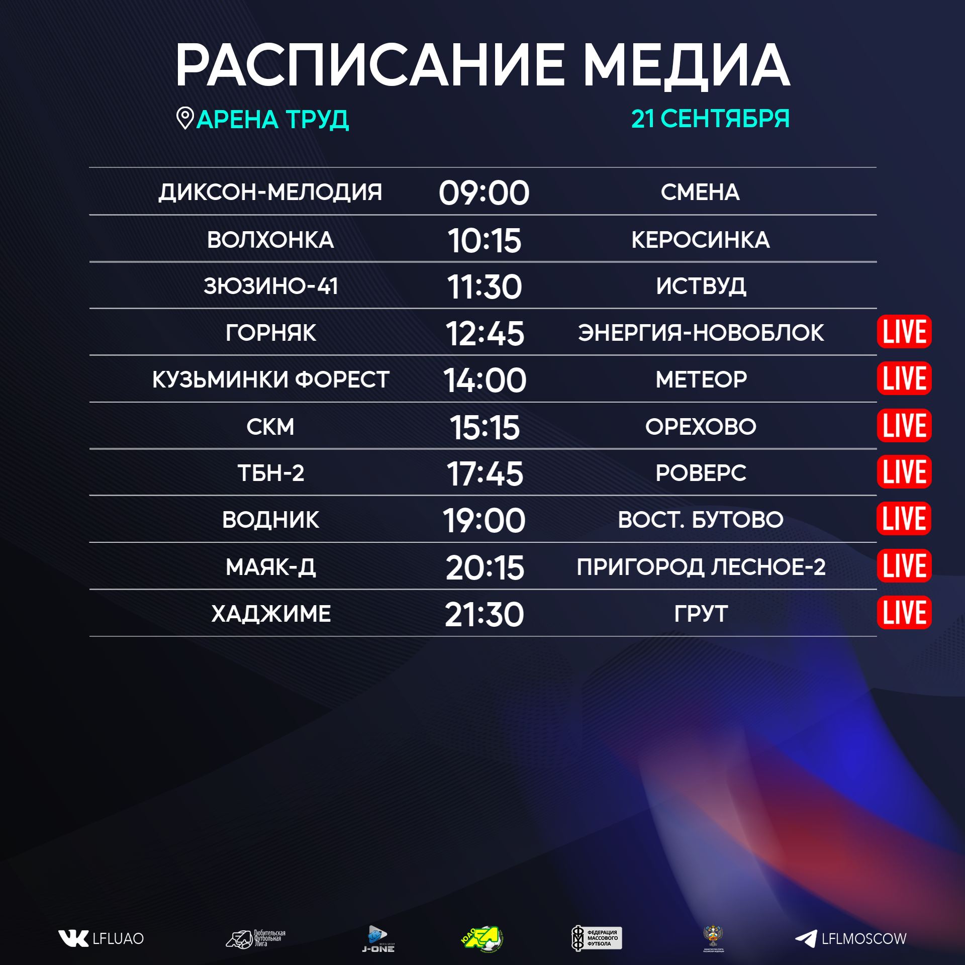 Представляем вашему вниманию расписание медиа Южной лиги ЛФЛ на предстоящий футбольный уик-энд