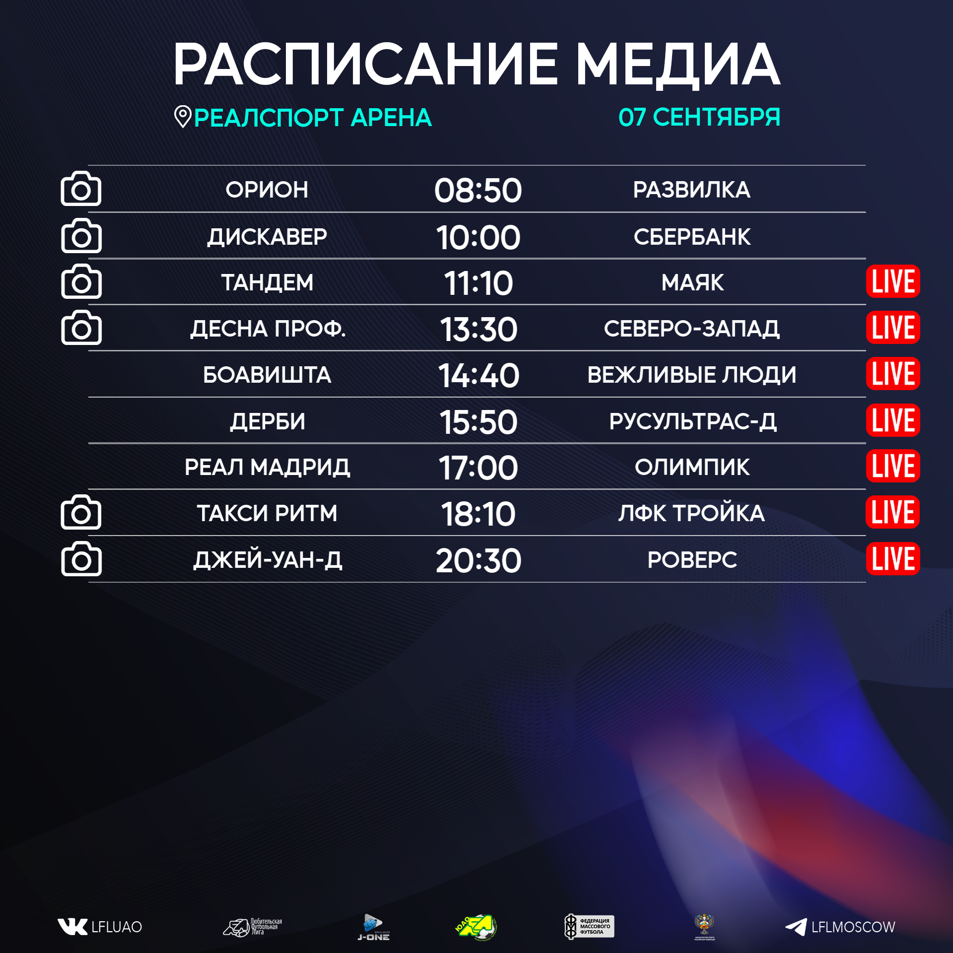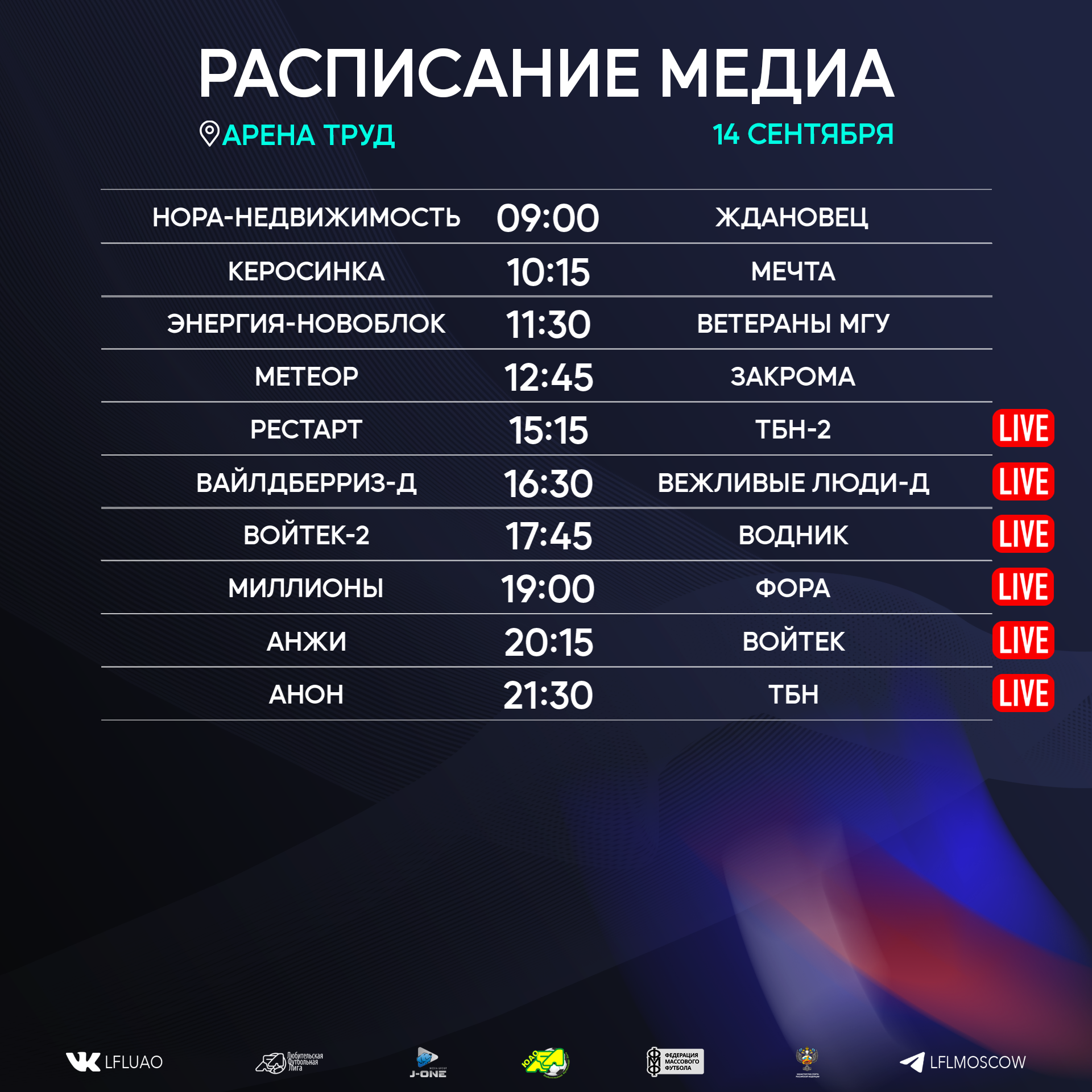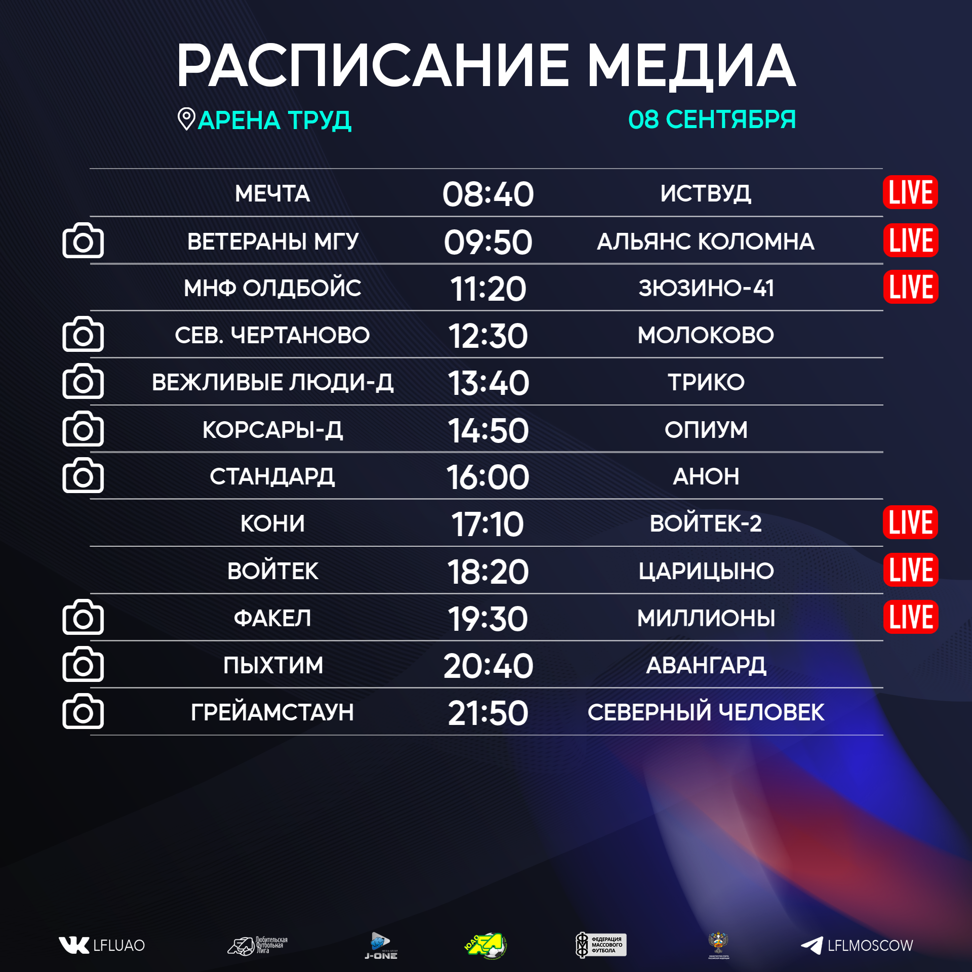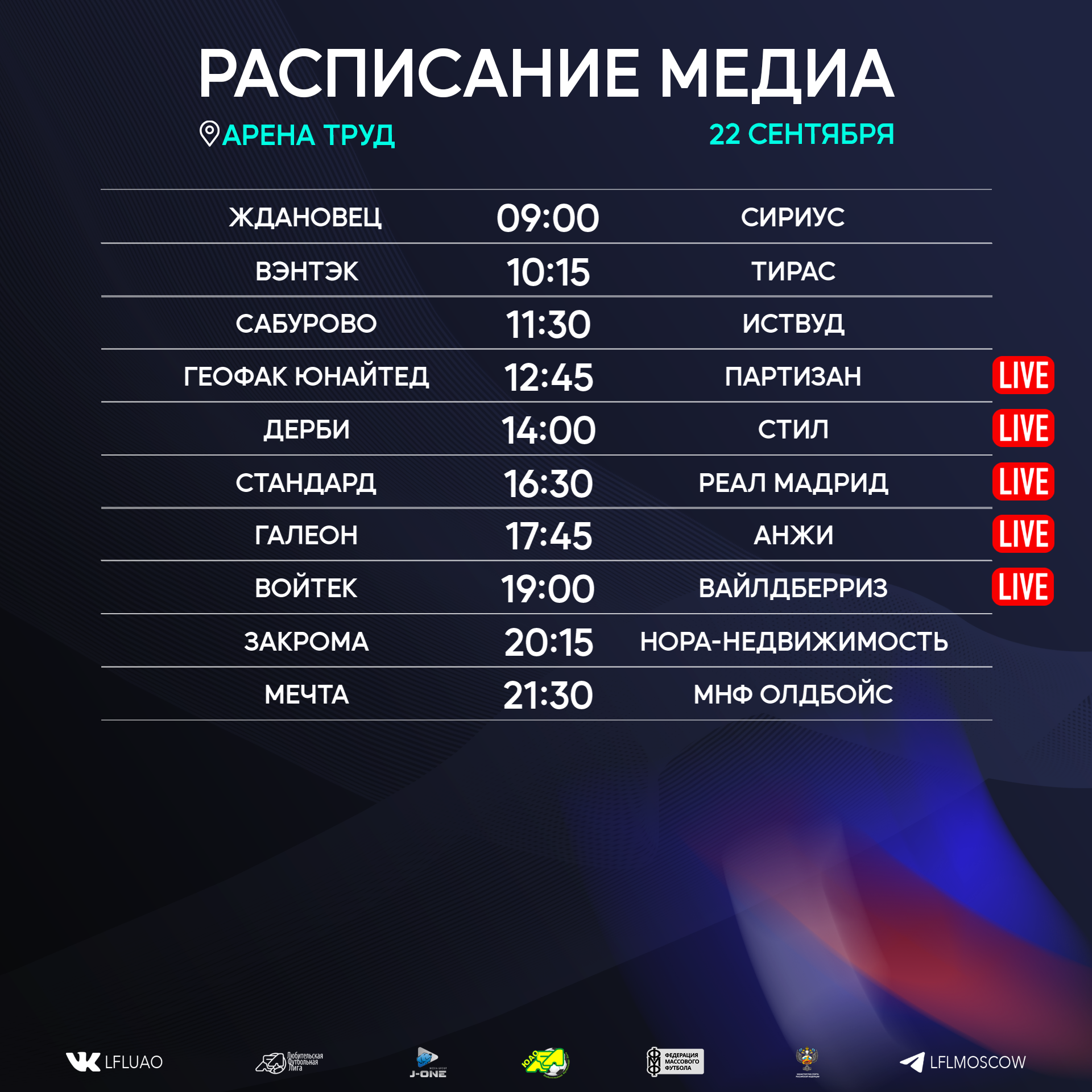 Представляем вашему вниманию расписание медиа Южной лиги ЛФЛ на предстоящий футбольный уик-энд