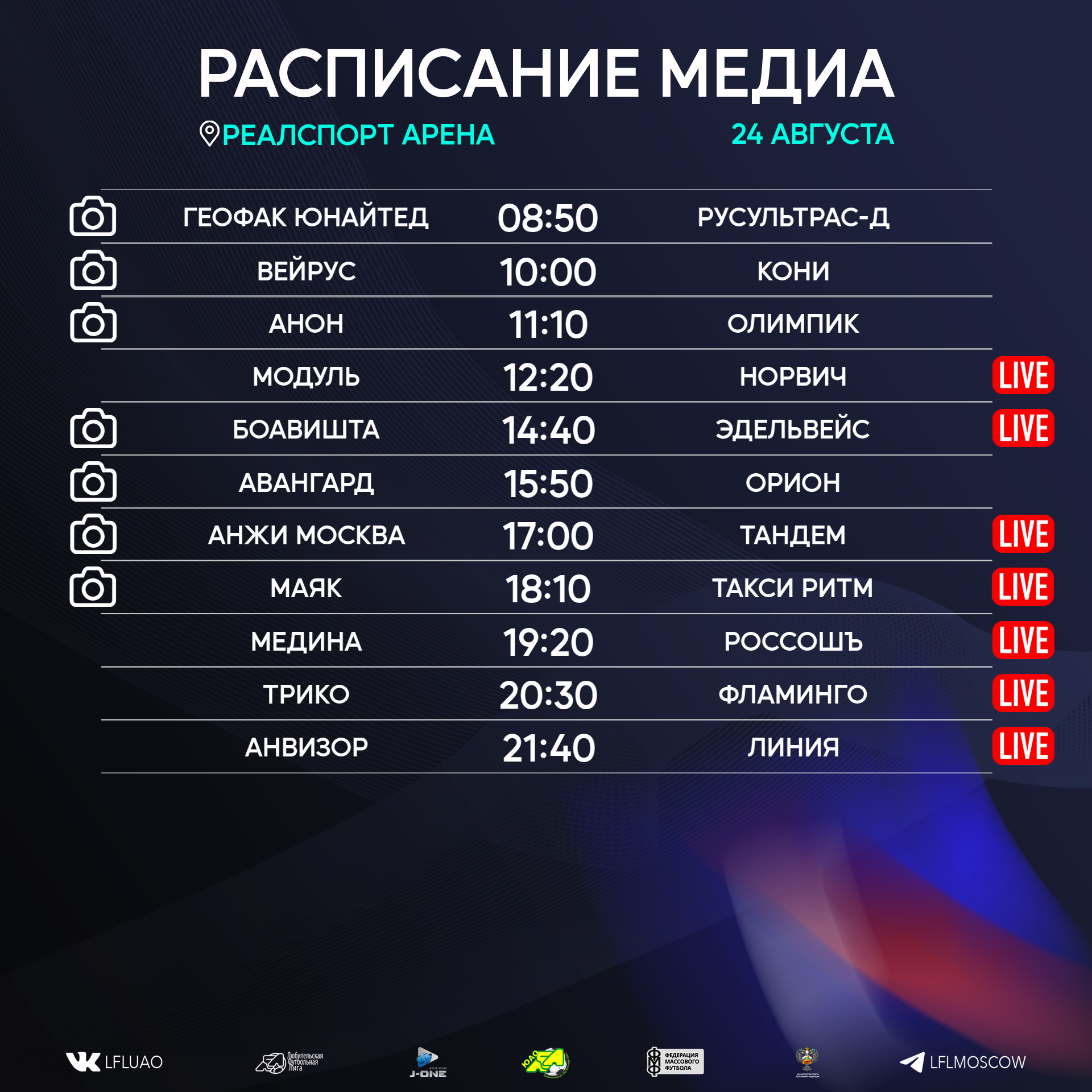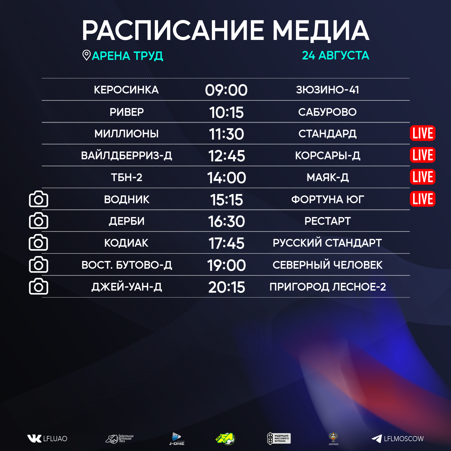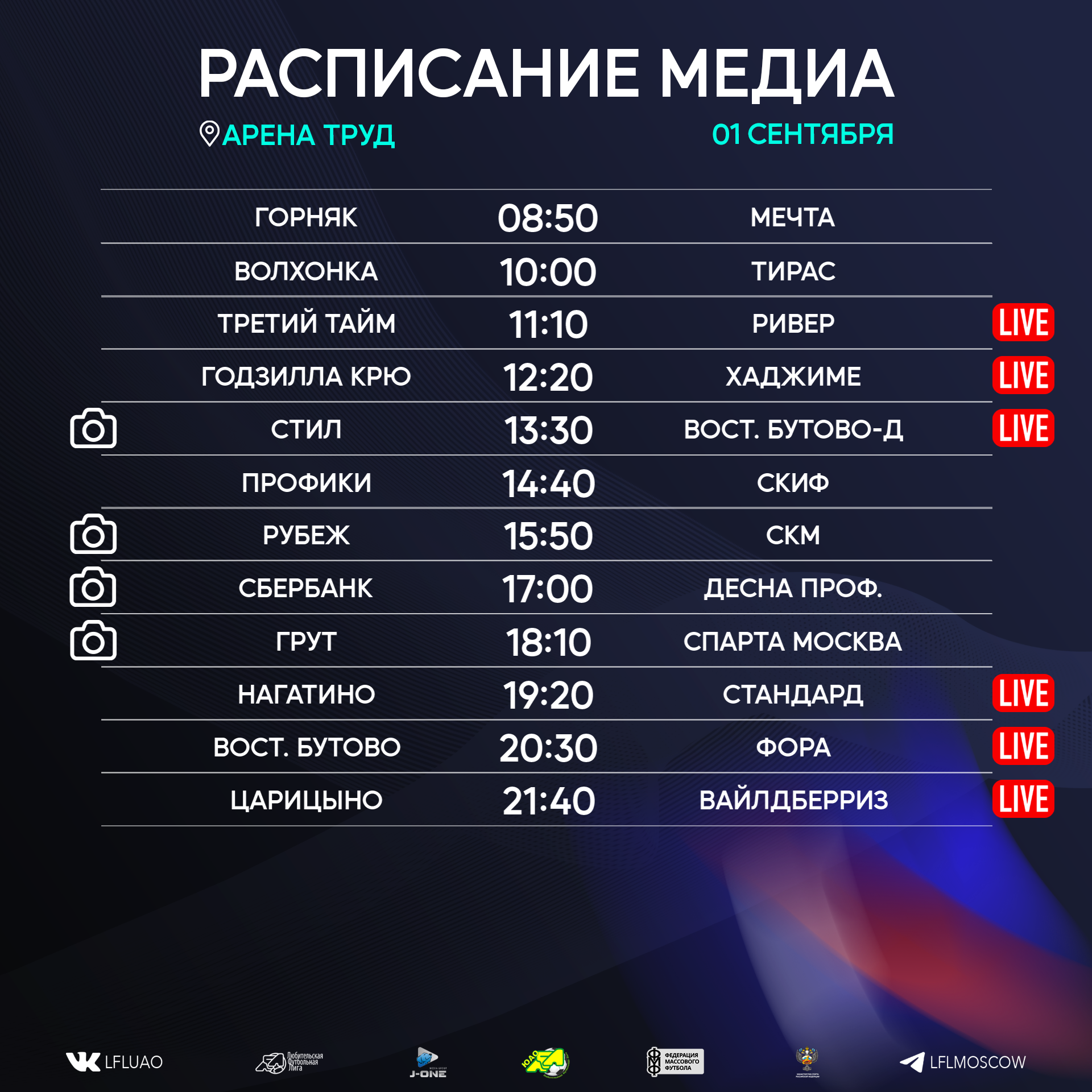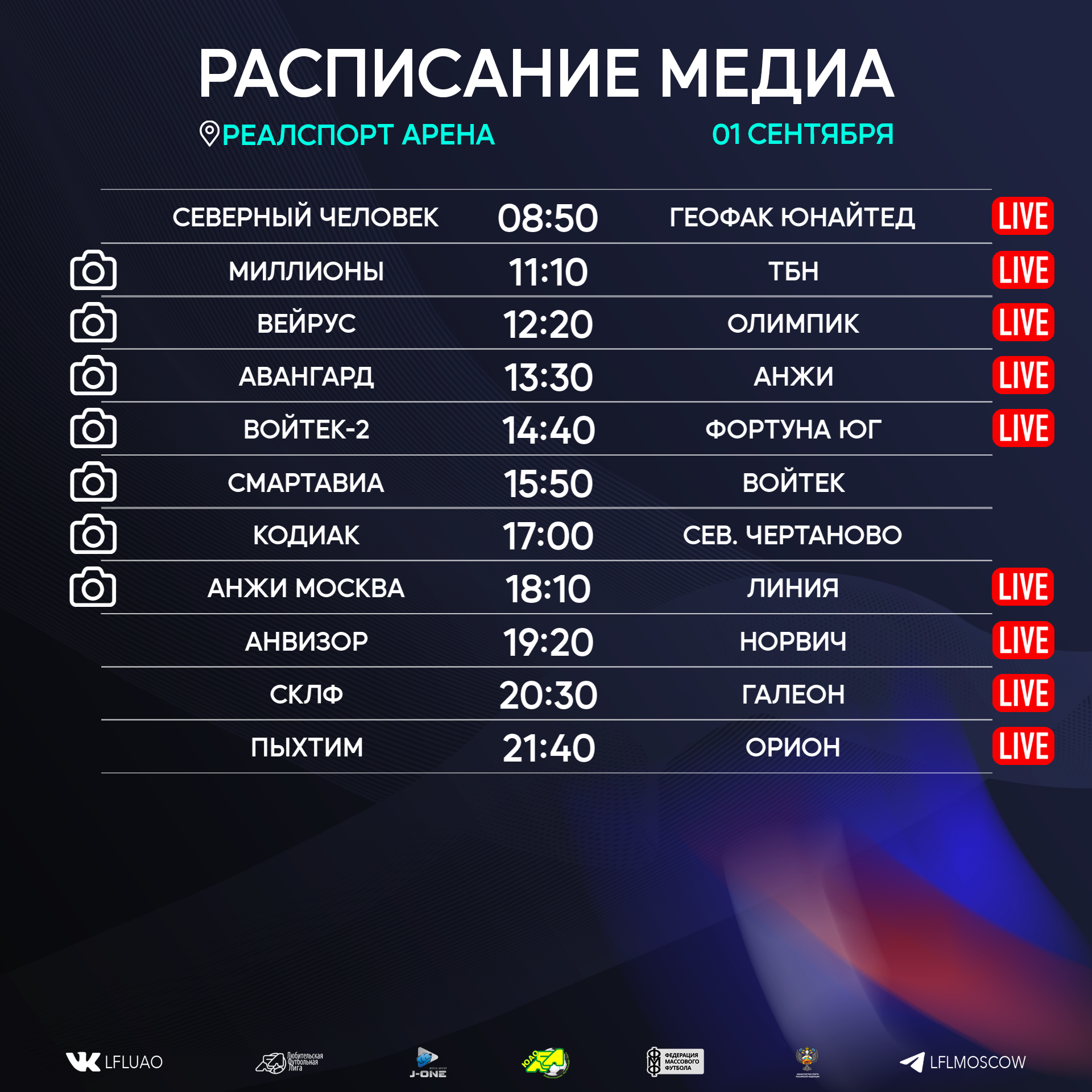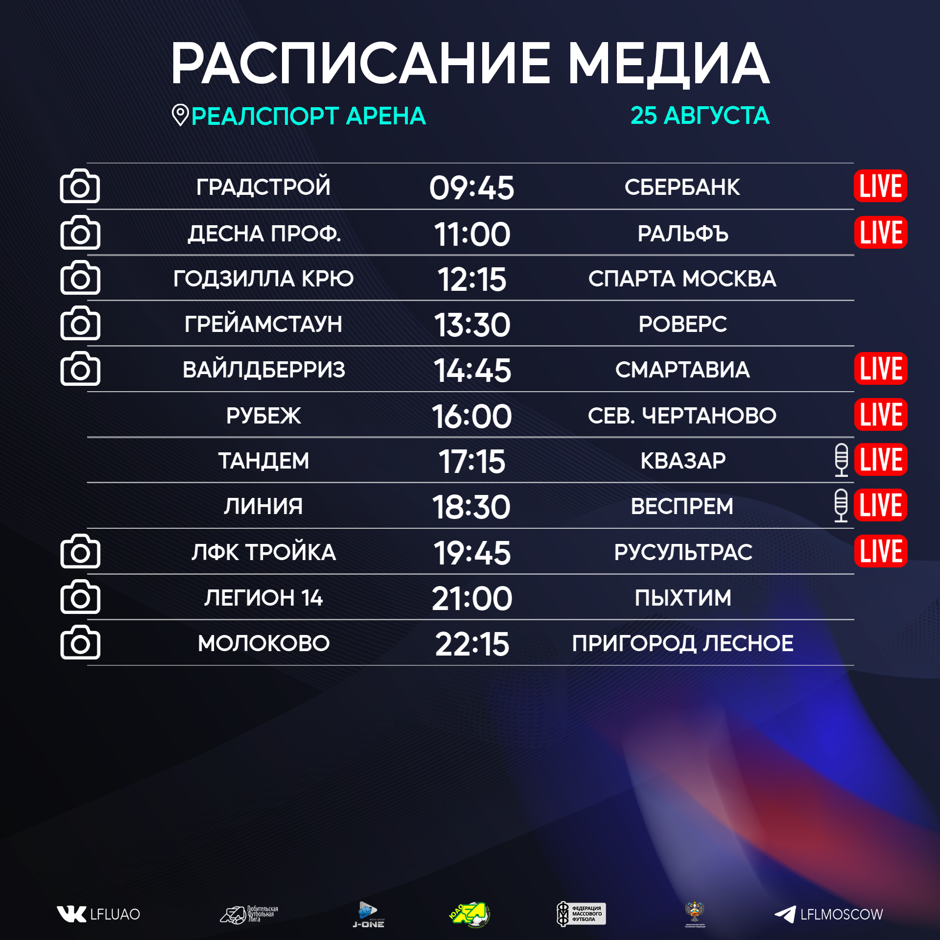 Представляем вашему вниманию расписание медиа Южной лиги ЛФЛ на предстоящий футбольный уик-энд