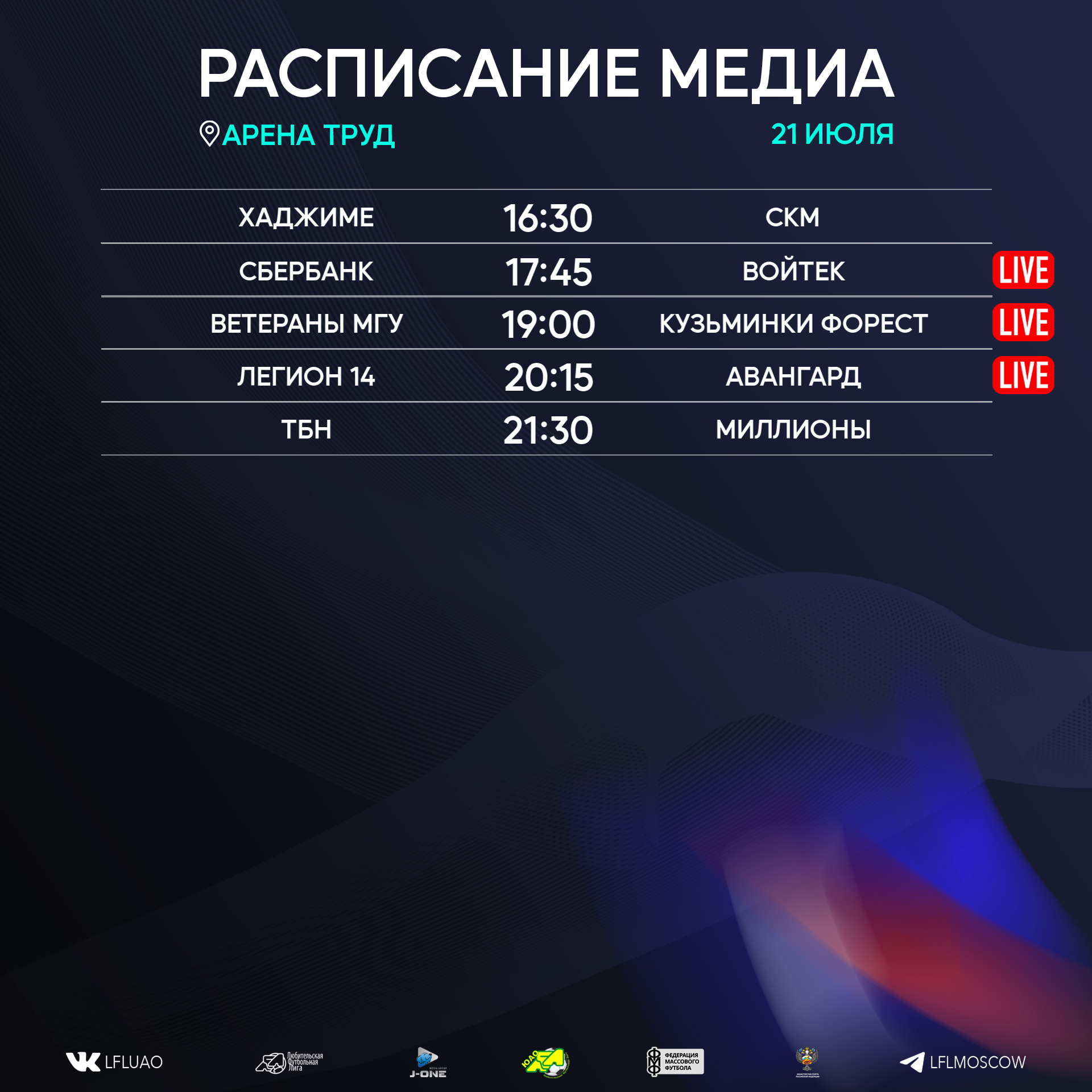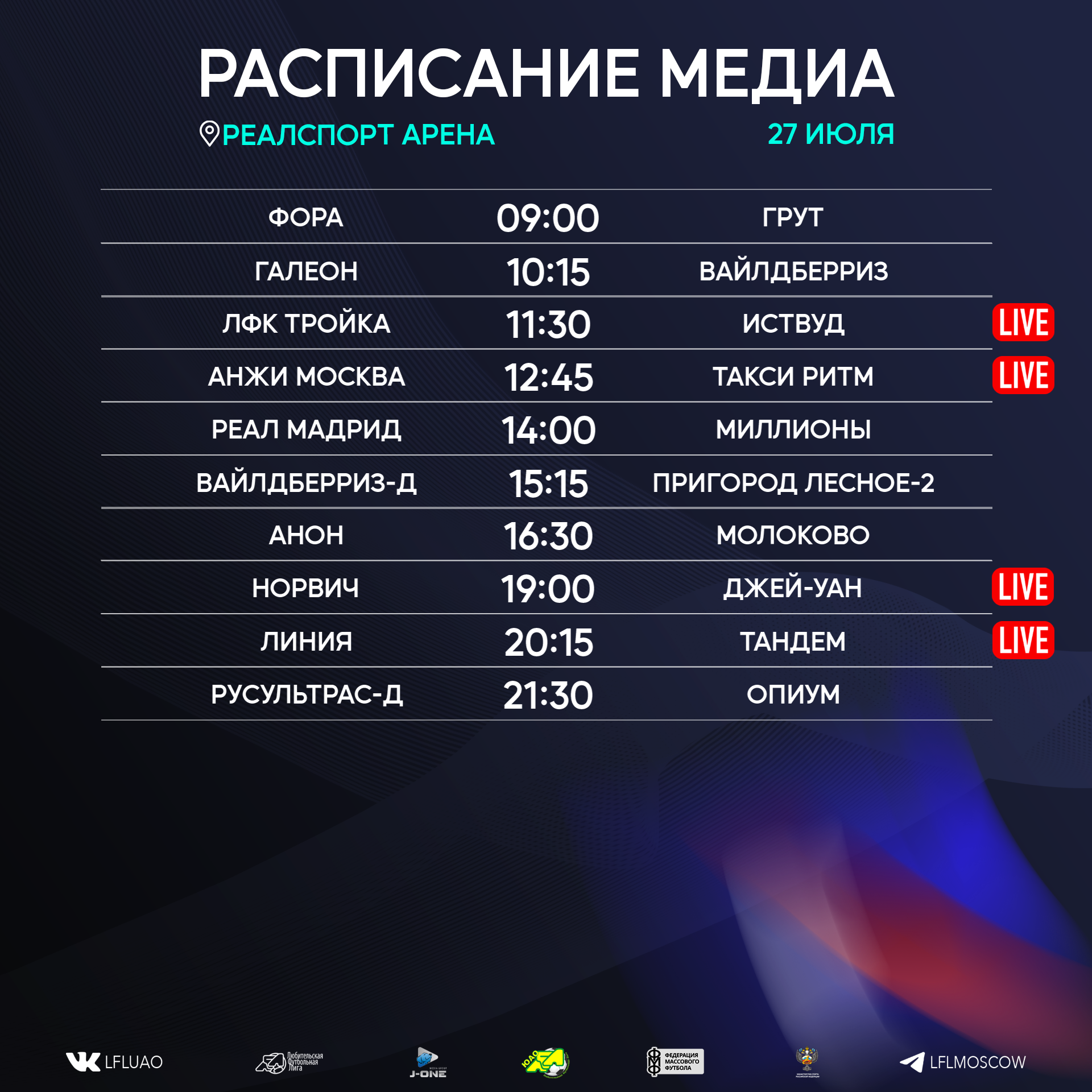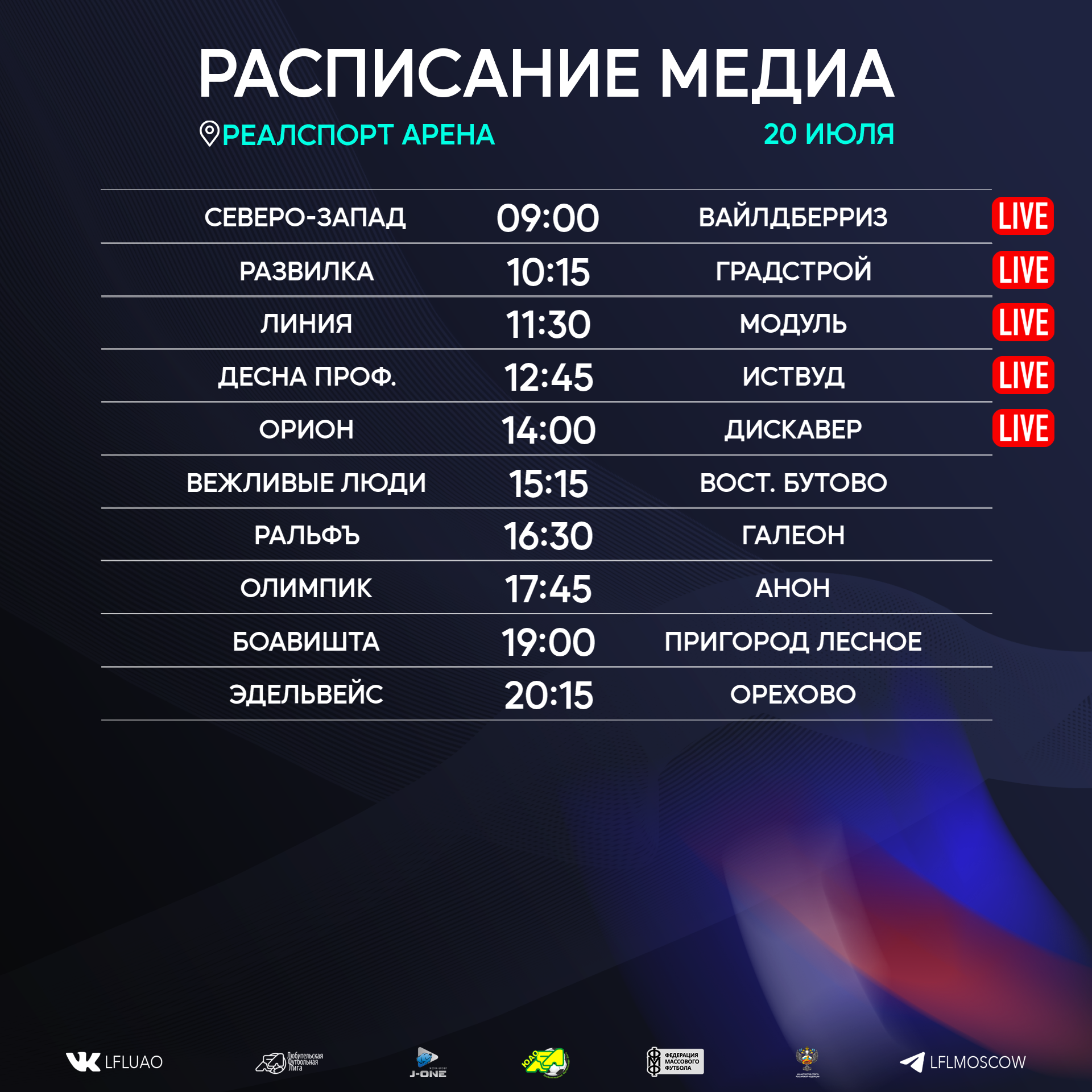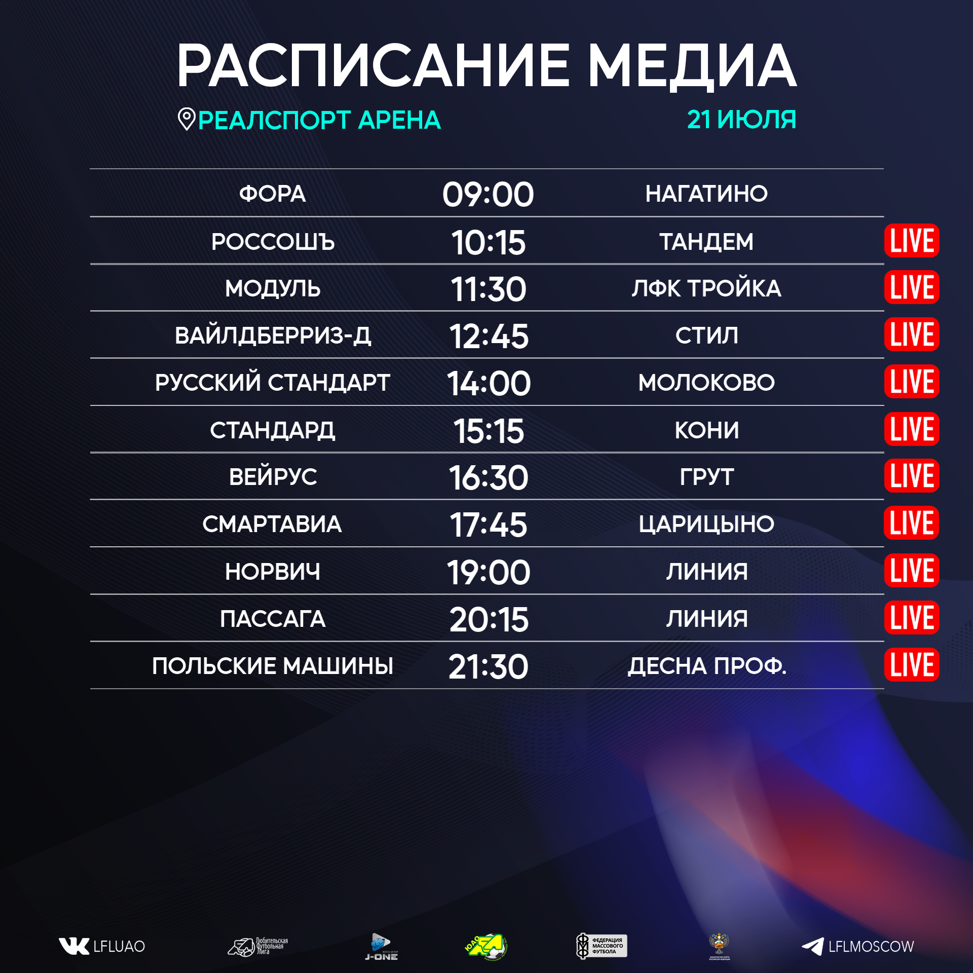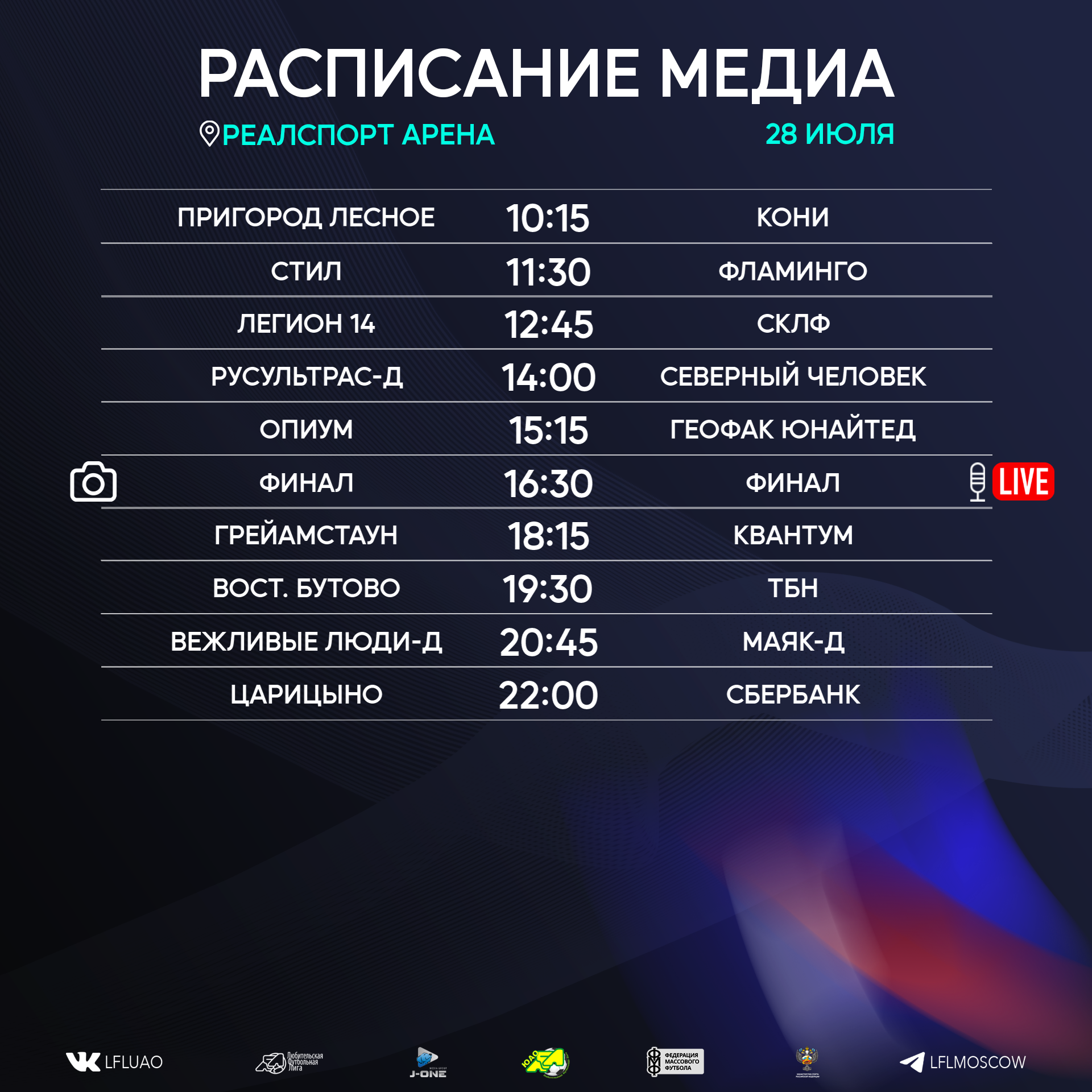 Представляем вашему вниманию расписание медиа Южной лиги ЛФЛ на предстоящий футбольный уик-энд