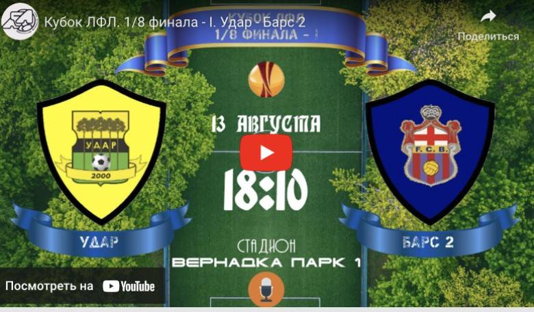 О Барсе2 мы также писали очень подробно на прошлой неделе в контексте первой встречи 1/8-ой Кубка ЛФЛ против юго-западного Удара. «Барсуки», кстати, его выиграли: после гола Пацекина вели 1-0, затем пропустили два гола подряд, Поздняков счёт сравнял, и под занавес встречи победу принёс Макеев. Но, кто в итоге пройдёт в четвертьфинал предположить категорически невозможно. Ответная встреча состоится также на Вернадке 1 не далее как 27-ого августа.