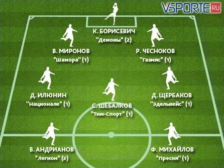 Зато драматично развивались события в концовке встречи "Дикие Ежи" - "СОЮЗ". После поражения в прошлом туре "ежики" показали хороший футбол против союзовцев, но не смогли создать большего задела, чем преимущество в один мяч перед последними минутами. "СОЮЗ" получил на 59-й минуте шанс спасти встречу и грамотно разыграл штрафной, выведя на ударную позицию свою главную силу Вопельникова, который и поразил ворота Ивана Якушкина, спася свою команду от поражения - 2:2. Для Вопельникова этот мяч стал вторым в матче. Стоит отметить также пятый гол в пяти последних встречах, до того не игравшего в сезоне форварда "Диких Ежей" Щёголя, долго лечившего разрыв связок.