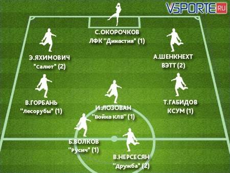 9+5 или 3+2? Казалось бы, о чем тут говорить? Но коллектив проекта "ВСпорте.ру" делает выбор, не только основываясь на голах, очках и секундах. Положительные тенденции в игре "Лесорубов" не остались незамеченными, а "Новатор" немного притормозил, откатившись во вторую тройку. Таким образом, лауреатом данной рубрики становится полузащитник "Лесорубов" Антон Смолин. Пусть это станет авансом ему и его самобытной команде.