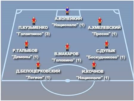 Победил и соперник "легионеров" по дерби ближайшего тура. "Национале" в очень тяжелом матче переиграл "СКА-Офигест". Несмотря на статус фаворита во встрече, команде Виктора Мигунова игра давалась очень тяжело. "Армейцы" же действовали легко и уверенно, осаждая владения Александра Копейкина на протяжении всего матча. И все же выигрывает в футболе не тот, кто больше создает моментов, а тот, кто больше забивает голов. Палочкой-выручалочкой "Национале" оказался Александр Бухаров Илья Кочнов, которому в последний календарный год было в основном не до футбола. Форвард, видимо, решил набрать форму в преддверии дерби, которое, конечно, не пропустит, и забил дважды, что вкупе с мячами Анатолия Фёдорова и Александра Шашина принесло "Национале" решающий перевес - 4:2. К восьмому туру белые подходят на третьей строчке.