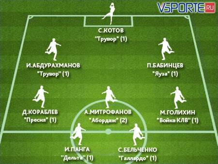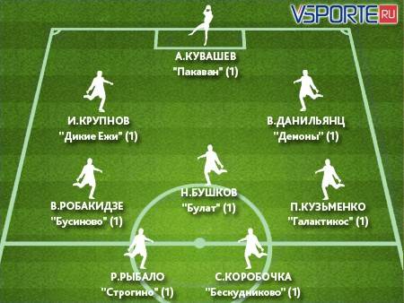 Место на последнем рубеже команды занял Денис Минченко, который пока выручает команду, наступив на горло собственной атакующей песне. Полевые же игроки "Бескудниково" забрали мяч под контроль и противопоставили традиционному несколько примитивному, но довольно эффективному вертикальному стилю "Булата", свой ажурный и техничный футбол. Наличие в составе приезжающего по большим праздникам и не каждый год Максима Белецкого еще усилило игру бескудниковцев. Сам полузащитник оформил дубль и помог сделать то же самое Сергею Дулыку, отдав тому голевую передачу. У "Булата" тоже нашелся свой "дублер", но двух голов Алексея Пономарёва оказалось мало даже для ничьи - 4:2 в пользу "Бескудниково", уверенно возглавляющего таблицу на старте.