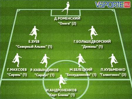 "Галактикос" расправился с неубедительным возвращенцем во Второй дивизион "Сириусом" несколько скромнее, но тоже очень убедительно. С первого же матча стали оправдывать ожидания лидеры команды форвард Илья Глотов и защитник-полузащитник "Глушаков" Северной лиги Павел Кузьменко. Они не просто забили по два мяча каждый, но еще и ассистировали друг другу в каждом из голевых эпизодов. "Сириус" ответил только голом престижа от Дениса Шадрунова - 4:1 в пользу "галактических".