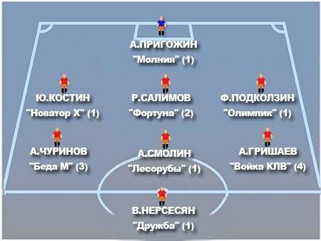 Положение: 1.Тройка Регион - 11 очков (5 игр). 2.Терминатор - 11 (5). 3.ФК Барс - 6 (5). 4.КПРФ - 0 (5).