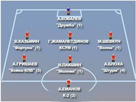 Безнадежными выглядят "Кила" и "Смена". Обе команды проигрывают даже своим потенциальным конкурентам в борьбе за сохранение места в высшем дивизионе и пока не демонстрируют признаков выздоровления. В этот раз катком по аутсайдерам прошлись КДС и "Азимут". Причем в составе КДС хет-трик оформил Евгений Дергунов, а дублем отметился Андрей Тыняный, а у "Азимута" очередные три гола записал на свой счет Виталий Гурцкая, попутно вышедший в лучшие бомбардиры турнира.