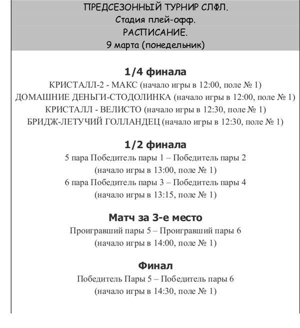 ПРЕДСЕЗОННЫЙ ТУРНИР. Итоги группового этапа и расписание плей-офф.