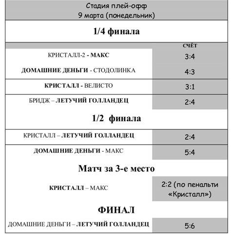 НОВОГОДНИЙ ТУРНИР. Итоги плей-офф.