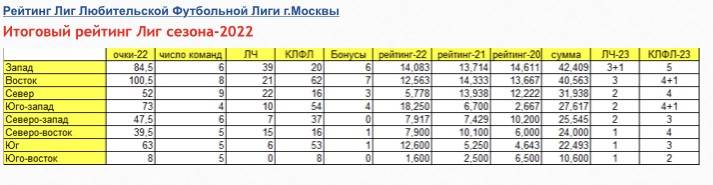 Медиа09.03.2023 «Новые приключения Запада» (превью 1-ого тура Кубка ЛФЛ) Ещё раз с праздником любви и весны милых дам! Штекер вынуть не удалось, посему лучшим подарком девушкам стала игра мюнхенской Баварии, смявшей на «Альянц Арене» звёздный ПСЖ с Месси, Мбаппе, Рамосом и зрителем Неймаром. У нас же в ЛФЛ свои Баварии и Парижи: в Кубке ЛФЛ дебютируют Техносила, Макарена и Барс-2, а Феникс99 – «уже плавал, знает» и выступает в малом «еврокубке» уже во второй раз. Подробнее07.03.2023 «Впервые вчетвером» (превью 1-ого тура Лиги Чемпионов) В первую очередь разрешите поздравить с праздником милых и любимых, которых в разных статусах очень даже не мало в Любительской Футбольной Лиге. Счастья вам, родные, заботы и тепла в это непростое время! Как хорошо, что «еврокубковые» матчи не выпадают в этом году на 8-ое марта! Ведь такое периодически случается. Мужья в большинстве своём будут дома, а Лигу Чемпионов 11х11 им вырубите из розетки. Подробнее03.03.2023 «Поехали! Let’s get it started!» (превью 1-ого тура Западной Премьер-лиги) Зимняя спячка в Москве наконец-то завершилась. Футбольные мишки, суслики, ежи повылезали из своих берлог и начали охоту за «питательными» очками и жертвенными трофеями. В грядущие выходные западного зрителя ждут баталии СуперКубка и 1-ого тура Западной Премьер-лиги. The Black Eyed Peas кричали со сцены: «Let’s get it started!» Гагарин просто сказал: «Поехали!» Подробнее28.02.2023 «Парящий Феникс и мчащий Барс» (превью Суперкубка Запада - 2023) Итак, уважаемые друзья, сезон-2023 официально объявляется открытым! Уже сыгран стартовый матч чемпионата между старшим и младшим Барсами, забито тринадцать мячей, а большинство остальных участников Западной Премьер-лиги проведут свой первый тур в ближайшие выходные. Но главное внимание уик-энда приковано к трофейному матчу – игре за Суперкубок, за который поборются серебряный призёр прошлого чемпионата и финалист Кубка Западной лиги. Подробнее20.02.2023 «Переправа Макарены и старт сезона 2023» (превью Кубка Переправы и стартового тура ЗПЛ) «Переправа, переправа, берег левый, берег правый! Снег шершавый, кромка льда… Кому память, кому слава, кому тёмная вода, - ни приметы, ни следа…» Цитатой из главного произведения Александра Трифоновича Твардовского - поэмы «Василий Тёркин» начинаем повествование о начале нового сезона, который вводит нас в интереснейший турнир между победителями первых дивизионов округов; при этом обладатель трофея получит прямую вакансию во второй по значимости московский турнир – престижнейший Кубок ЛФЛ. Подробнее29.12.2022 «Сезон отступил, Новый Год наступает» (итоги Западной Премьер-лиги, часть вторая) Про то, что завершился сезон Западной Премьер-лиги мы сказать уже успели. Что ж теперь истекает и календарный год. Год непростой, суровый, весьма противоречивый. Однако, несмотря на все трудности, наличие негативного фона и навалившиеся словно снежный ком невзгоды мы продолжали играть в футбол и освещать его: комментировать матчи, брать интервью, выкладывать новости, писать статьи. Продолжим это делать и в году следующем, две тысячи двадцать третьем, в коем желаем всем вам, людям футбольным и околофутбольным, крепкого здоровья, мирного бытия, долгих и счастливых лет жизни! Подробнее23.12.2022 «Время собирать камни» (итоги Западной Премьер-лиги, часть первая) Мудрый Царь Соломон изрёк однажды: «Всему своё время, и врем