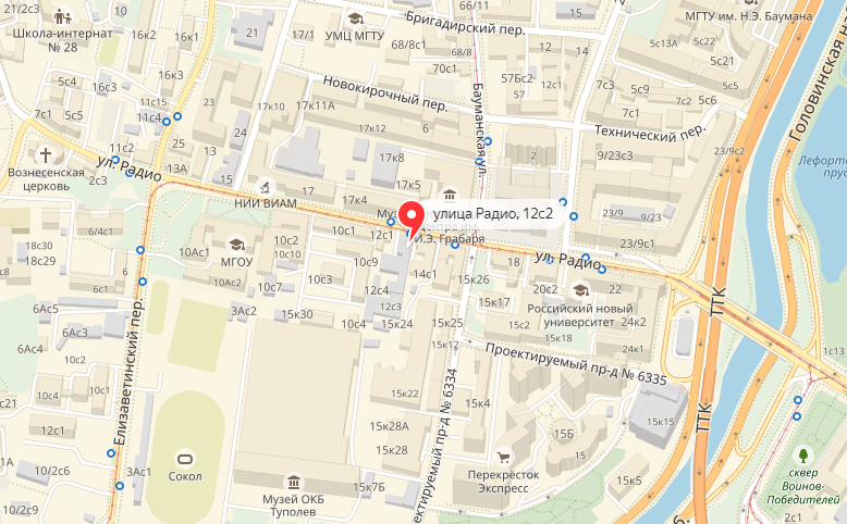 Проезд от ст.м. Бауманская (трамваи №37, 45, 50 до ост. «МГТУ им. Баумана», либо трамвай «Б» до остановки «улица Радио»), или от ст. м. Курская (трамваи №24, «Б» до ост. «улица Радио»).