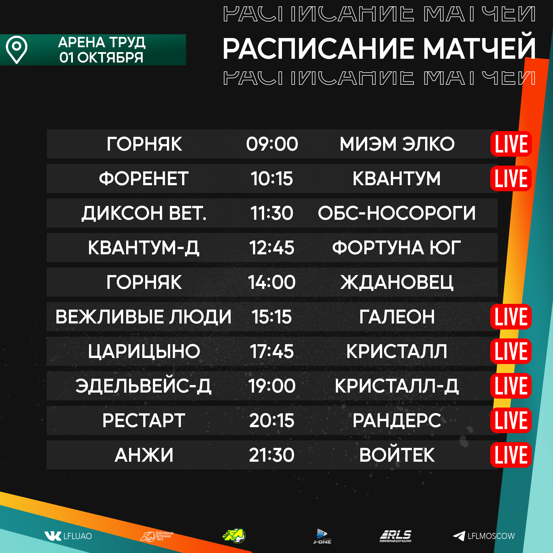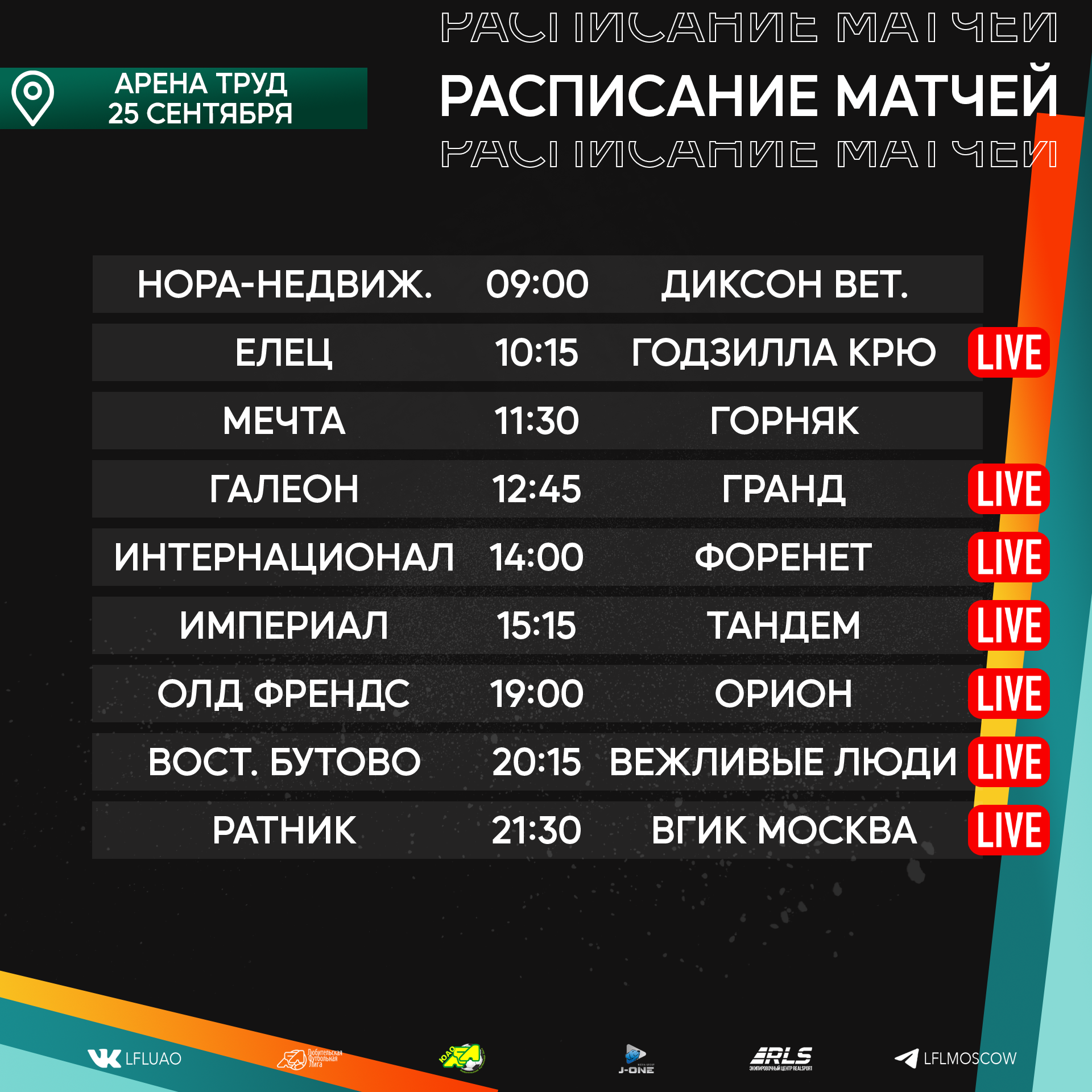 Медиа05.10.2022 Записи трансляций матчей с игровой недели 01-02 октября Творческий коллектив Южной лиги ЛФЛ представляет вашему вниманию записи трансляций матчей, прошедших в выходные дни Подробнее04.10.2022 Подошёл к концу очередной тур, подаривший нам немало сенсационных результатов, впечатляющих командных и индивидуальных перфомансов, а также невероятных вратарских спасений Подробнее30.09.2022 Дорогие друзья, в связи с проведением частичной мобилизации руководством Южной лиги приняты следующие решения Подробнее30.09.2022 Перед туром. Двадцать вторая неделя Совсем немного времени осталось до старта очередного футбольного уик-энда, в котором нас с вами ожидают яркие противостояния между лидерами, битвы аутсайдеров, дерби старых знакомых и многое другое Подробнее30.09.2022 Расписание медиа Южной лиги ЛФЛ Представляем вашему вниманию расписание медиа Южной лиги ЛФЛ на предстоящий футбольный уик-энд Подробнее28.09.2022 Записи трансляций матчей с игровой недели 24-25 сентября Творческий коллектив Южной лиги ЛФЛ представляет вашему вниманию записи трансляций матчей, прошедших в выходные дни Подробнее27.09.2022 Позади очередной футбольный уик-энд, который подарил нам немалое количество эмоций Подробнее26.09.2022 Открытие трансферного окна 26 сентября ...принято решение открыть последнее трансферное окно сезона-2022 с 26.09.2022 г... Подробнее23.09.2022 Перед туром. Двадцать первая неделя Совсем немного времени осталось до старта очередного футбольного уик-энда, в котором нас с вами ожидают яркие противостояния между лидерами, битвы аутсайдеров, дерби старых знакомых и многое другое Подробнее22.09.2022 Расписание медиа Южной лиги ЛФЛ Представляем вашему вниманию расписание медиа Южной лиги ЛФЛ на предстоящий футбольный уик-энд Подробнее |