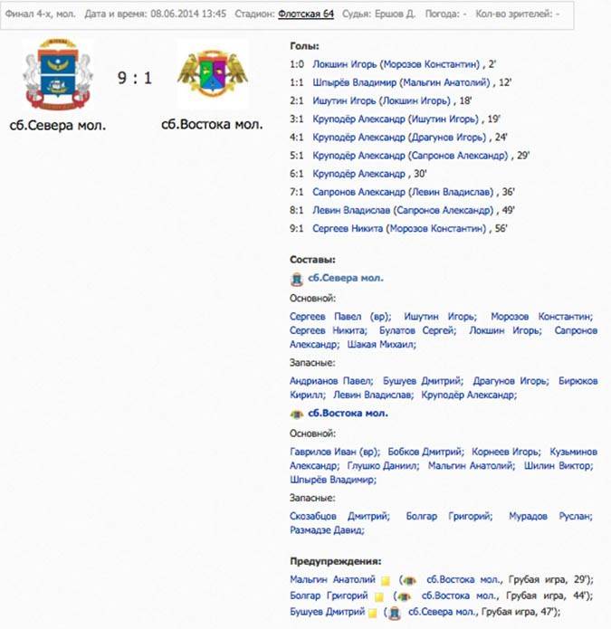 Расписание дня на «Флотской» было составлено таким образом, что первыми на поле выходили полуфиналисты турнира молодежных команд. Пока Север разрывал Юг (5:0), наша «молодежка» неспешно подтягивалась на стадион. В итоге Олегу Карвацкому удалось собрать следующий состав на Финал четырех: