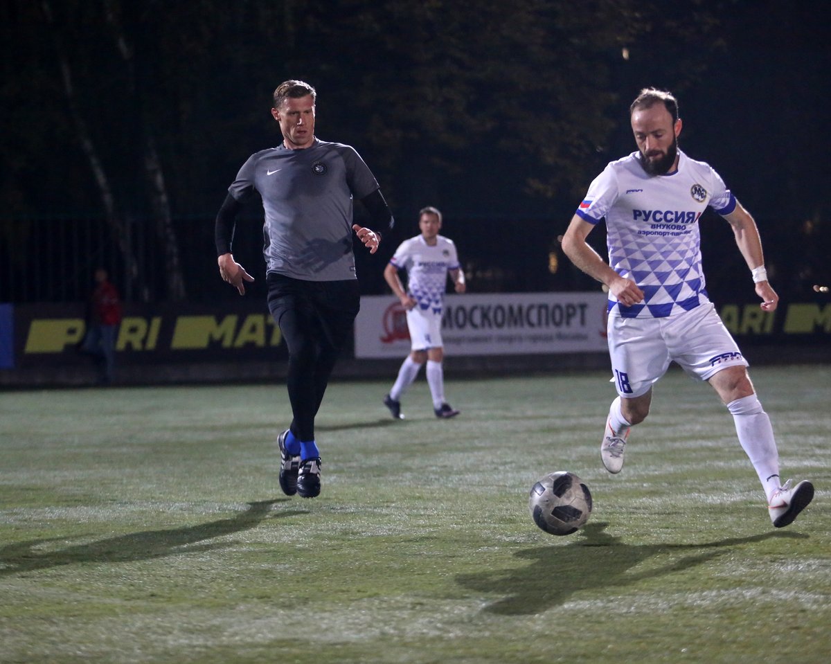 Затем уже Сошнин имел хороший момент для того чтобы счёт сравнять, но затянул с ударом и защитник его накрыл. Несмотря на то, что "риелторы" играли с одной заменой, они не забывали и про атаки. Вынужденный перевод в центр Сошнина позволял нагружать Агапцева и самому обострять. Ну а ближе всех к забитому мячу был Чекунов, дважды не попавший по пустым воротам.