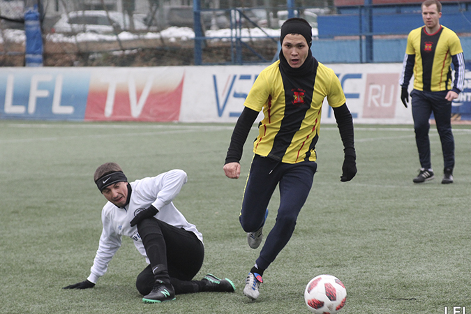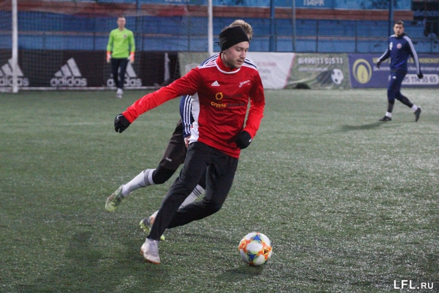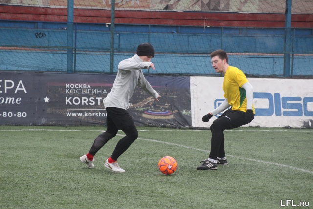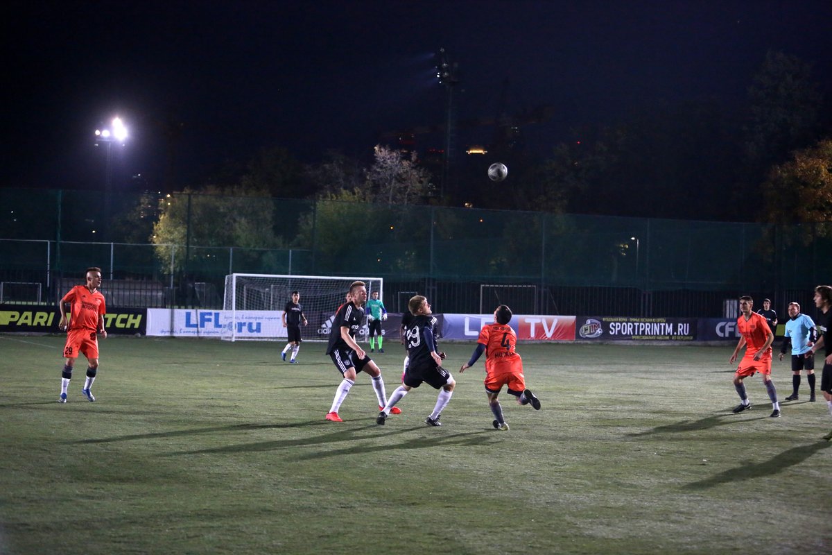 Под настоящий снег и громогласные аплодисменты Портера в честь его победы в Лиге Москвы, который завершился на соседнем поле, Успенское взяли игру под свой контроль. Преимущество было, конечно не тотальным, но первую половину тайма они провели на половине Мегатитана в позиционных атаках, иногда тревожа Чайкина дальними ударами. При этом забить Успенское смогли в быстрый контратаке. Корчагин оформил длинную передачу на Гнабо, который перекинул вышедшего из ворот вратаря - 0:1.