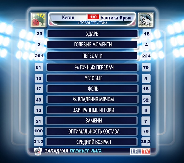 Именно такой результат, который показали Кегли и Балтики в очном поединке 6-го тура, мы и будем разбирать сегодня. И начнем мы со статистики.