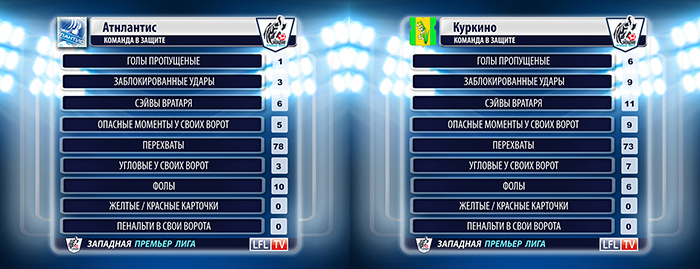 Львиную долю неточных передач составили розыгрыши Савоськина при выносе мяча от ворот. Дальние передачи на половину поля соперника крайне редко доходили до адресата, что отразилось на общей статистике. Полевые же игроки старались держать мяч, и не выбивать абы куда. Но только до того момента, как Атлантис не стал яростно наседать на ворота, и вынести мяч куда подальше перестало быть футбольным моветоном.
