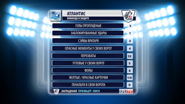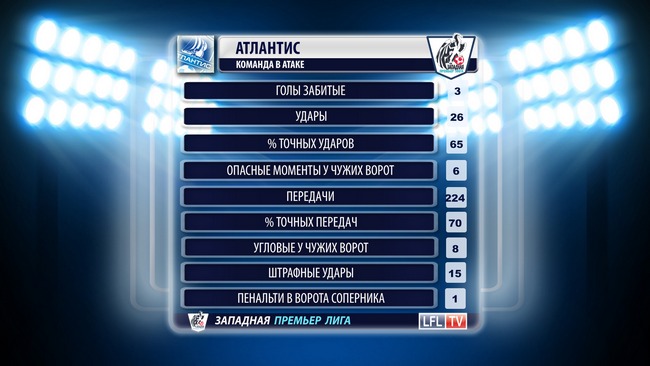 Интересны факт: Атлантис значительно превзошел Барс по такому показателю, как передачи. Причем как по общему числу, так и по проценту точных передач. 384 против 245, и 84 против 73 соответственно! А ведь это один из ключевых компонентов игры «сине-гранатовых», который позволял команде в первых матчах сезона уверенно обыгрывать своих соперников. Как же тогда Атлантис проиграл, и так крупно?