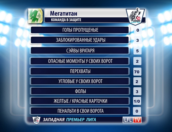 Клуб: Мегатитан. Противник: Тройка Регион (Юг). Счет: 4:0.