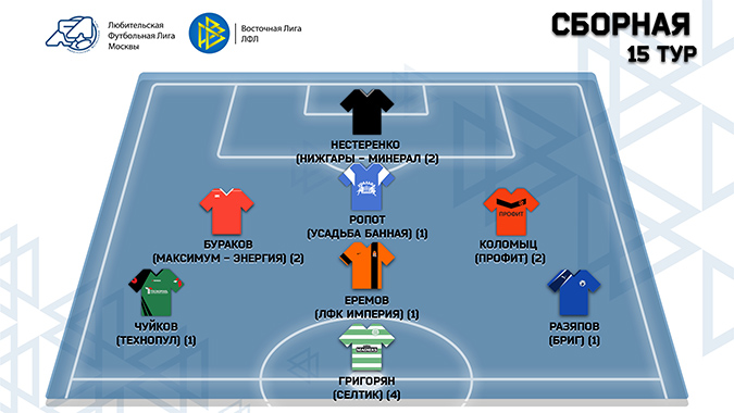 Медиа20.01.2015 Премьер-Лига. Обзор 17-го тура. После зимнего перерыва команды со свежими силами принялись решать свои задачи на сезон, все более размыто выглядит верхушка турнирной таблицы, а в ее низу пока без изменений. Подробнее о 17-м туре Западной Премьер-лиги в нашем еженедельном отчете от www.lfl.ru. Подробнее20.01.2015 Обзор матчей 16-го тура Юго-Восточной Премьер-Лиги. «Русич» вновь громит «ГОСТ», «Тринашка» наносит второе поражение «Миллениуму», «Марьино» и «Люблинец» на двоих забивают один мяч. Читайте об этих и других матчах в обзоре 16-го тура ЮВПЛ. Подробнее19.01.2015 В это воскресенье завершился первый круг чемпионата Высшего дивизиона Восточной Лиги. Все восемь матчей были сыграны в срок. До этого в субботу были проведены два перенесенных поединка – «Селтик» против «Коньково», а также топ-противостояние Лиги «Мортон» – «Усадьба Банная». Выходные получились огненными и перевернули все вверх дном. Подробности – в традиционном Обзоре тура. Подробнее15.01.2015 Третий дивизион! Обзор перенесенных матчей 18 и 19 туров (10-11.01.2015 г.)! Прошли первые поединки в 2015 году в Третьем дивизионе, и в них, надо отметить, изобиловало большое количество голов. В 11 встречах было забито, вдумайтесь, 95 голов, то есть на игру приходилось чуть выше восьми мячей, одним словом – «фантастика». Из других событий, можно отметить смену лидера в чемпионате, на вершину взобрался коллектив «Атлант», обыгравший в очной встрече, набирающего обороты ЛФК «Синдикат» со счетом 3:2. Прошлый лидер турнира «Реуткабель» проиграл «опытному» ФК «Миллионы» со счетом 3:8. В прошедший «уик-энд» два футболиста забили по четыре мяча, или как это называется, сотворили по «покеру». В общем, было очень интересно, поэтому читайте наш первый обзор Третьего дивизиона. Подробнее13.01.2015 Первый дивизион! Обзор перенесенных матчей 16 и 17 туров (10-11.01.2015 г.)! В прошедшие выходные дни состоялись два перенесенных матча. В одном из них команда «Носороги» легко одолела своего соперника ФК «Сириус», отгрузив в их ворота 10 голов, не пропустив в свои ни одного, во второй встрече клуб «Вендетта» взял верх над крепким татарским ФК «Дуслар-2», обыграв его со счетом – 3:2. На такой «легкой ноте» стартовал футбольный 2015 год в Первом дивизионе ЮАО города Москвы. Подробнее13.01.2015 Второй дивизион! Группа "В"! Обзор перенесенных матчей 16 и 17 туров (10-11.01.2015 г.)! В эти выходные прошли перенесенные поединки 16 и 17 туров в этом дивизионе и отметим, что не во всех встречах результаты были такими, какими многие их ожидали. К примеру, ФК «Ратник» обыграл одного из лидеров этого сезона, коллектив «Тополь-М» со счетом – 4:1. Клуб «Чивас» потерял два очка, сыграв боевую ничью – 4:4 с «нагатинцами». Состоялась также, центральная игра тура да и всего чемпионата, в которой ЛФК «Ардо» укрепил свои лидирующие позиции в сезоне, повторно обыграв своего преследователя в чемпионской гонке ФК «Полет», результат на табло по итогам матча остался – 5:2. Более подробно о матчах прошедшего «уик-энда», читайте в нашем очередном обзоре. Подробнее13.01.2015 Второй дивизион! Группа "А"! Обзор перенесенных матчей 16 и 18 туров (10-11.01.2015 г.)! В прошедшие выходные состоялись доигровки во Втором дивизионе в Группе «А», сенсационных результатов не зафиксировано, разве что можно отметить две разгромные победы: ЛФК «Бирюлево» со счетом 8:2 и «Олд Френдс» со счетом 9:1, но если «бирюлевцы»