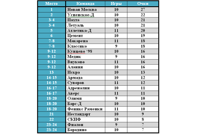 Видит Лига и плюсы в создании серебряной группы. В частности, командам будет интереснее сыграть с примерно равными себе соперниками из другого дивизиона. Кроме того, у коллективов, завязших в середине турнирной таблицы, появляется стимул побороться за медали. Онлайн-таблицу Серебра рисовать не буду только потому, что не знаю наверняка, что будет с очками, набранными со снявшимися коллективами, а также какова ситуация в дивизионе «Б» с «Гренадином», но прикинуть при желании можно.
