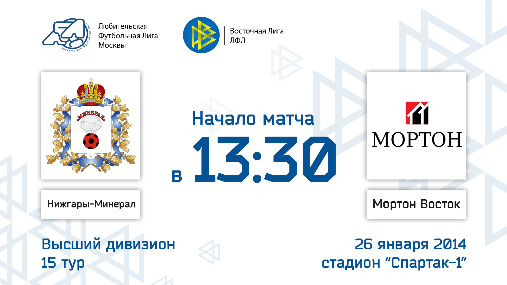 Медиа14.02.2014 Премьер-Лига. Перед 20-м туром. Чемпионат ЗПЛ продолжает в обычном бесперебойном режиме. Прошла неделя и стартует очередной, 20-й по счету тур. Более чем десятилетнее противостояние Балтики и Арсенала, непримиримое соперничество Мегатитана и ФК Барс, интересная встреча Атлантиса и Авенты. Все это и не только в нашем сегодняшнем обзоре. Подробнее о двадцатом туре ЗПЛ в нашем превью от www.lfl.ru. Подробнее07.02.2014 Премьер-Лига. Перед 19-м туром. Футбольная жизнь в ЗПЛ не останавливается. На очереди 19-тур сильнейшей ЛФЛ Москвы. Гвоздем программы, безусловно, будет противостояние претендентов на чемпионство КАИТ-Спорт – Атлантис. В свою очередь Спартак-ГИА и Внуково поспорят между собой за право остаться в элитнйо лиге Запада. Подробнее о девятнадцатом туре ЗПЛ в нашем превью от www.lfl.ru. Подробнее01.02.2014 Второго февраля, в воскресенье, берет старт второй круг первенства Высшего дивизиона Восточной Лиги. Шестнадцатый тур согласно календарю будет точной копией первого. Поменяются только номинальные хозяева. Нас ждет противостояние лидера чемпионата – «Мортона» – с «Профитом», попившим немало фаворитской крови в первом круге. «Усадьба Банная» и «Нижгары-Минерал» постараются сломить сопротивление андердогов в лице «Гольяново» и «Сокола». Ну а главным событием дня станет противостояние «ДИСы», которая начинает чемпионат с чистого листа, и «Урагана», сметающего соперников тем самым ураганом в последних матчах! Превью шестнадцатого тура для вас подготовила пресс-служба Восточной Лиги. Подробнее24.01.2014 В предстоящие выходные завершится первый круг чемпионата Высшего дивизиона Восточной Лиги сезона 2013/2014. В субботу нас ждут два перенесенных матча, а в воскресенье состоится пятнадцатый тур, главным событием которого будет схватка двух претендентов на чемпионство – «Нижгар-Минерал» и «Мортона». Предваряет жаркие баталии в последнем январском туре традиционное превью, подготовленное пресс-службой Восточной Лиги. Подробнее24.01.2014 Премьер-Лига. Перед 17-м туром. Очередные морозные игровые деньки ожидают команд-участниц ЗПЛ. Да, играть в таких условиях непросто. Но будет повод двигаться быстрее, чтобы не замерзнуть. Много интересных матчей ожидается в 17-м туре, но особенно интересно будет понаблюдать за игрой ФК Барс – Авента. В этой встрече команды должны «зажечь». Подробнее17.01.2014 Премьер-Лига. Перед 16-м туром. В новый календарный год, с новыми эмоциями. ЗПЛ возобновляет чемпионат матчами 16-го тура. В трансферный период произошли некоторые интересные события, которые мы затронули в нашем обзоре. Подробне о 16-м туре читайте в нашем превью тура. Подробнее17.01.2014 В предстоящее воскресенье состоится четырнадцатый тур Высшего дивизиона Восточной Лиги. Главным его событием станет противостояние «Сборной РМА» и «Нижгар-Минерал». Кроме того, в субботу будут сыграны два перенесенных матча с приставкой «топ». «Усадьба Банная» и «Сборная РМА» сразятся в игре седьмого тура, а «Мортон» и «ДИСА» решат между собой, кто сильнее, в игре, отнесенной календарем к двенадцатому туру. Уик-энд обещает быть богатым на суперматчи и непредсказуемые результаты. Предваряет его, по традиции, превью от пресс-службы Восточной Лиги. Подробнее10.01.2014 12 января будет сыгран тринадцатый тур Высшего дивизиона Восточной Лиги – первый в Новом 2014 году. «ДИСА» после обидного 