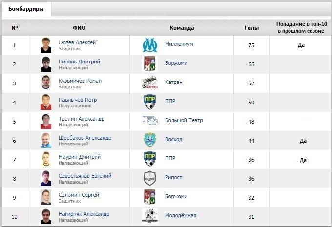 Левобережный по инерции кусает всех подряд, и решает свои местечковые задачи. Например, в красивом стиле переигрывает ППР, но проигрывает важное для себя дерби Русичам. По количеству забитых мячей ЛБ идет пятым с конца, результативность команды сильно упала по сравнению с прошлым годом (165 мячей против нынешних 93). Вероятно, именно поэтому Левобережный идет на 6 строчек ниже, чем в прошлом сезоне.