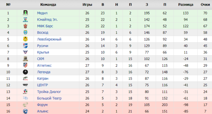 В связи со снятием с чемпионата «Атлетикса», который должен занять по регламенту последнюю строчку, пару ему с «билетом на выход» составляем «Альянс». Таким образом, «Большой Театр» и «Форум» оказываются в зоне стыковых матчей, где, вероятнее всего, и завершат сезон.