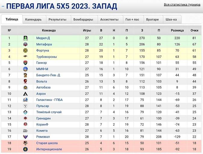 Медиа29.09.2023 30 тур, развязка все ближе! Первая лига Запада ЛФЛ 5х5. 29 тур Первой-лиги Запада 5х5 завершился в прошлые выходные, интересных матчей было достаточно много. Хочу отметить, что Ремовал одержал победу не у самого простого соперника, переиграл команду ММФ-М, в целом последние три матча команда показывает характер и набирает очки. Так же хочу отметить внезапную победу Интера над Бандитами, подробности узнаем у принимающих участия в матче. Очень жаль, что Аэрон не смог собрать свой боевой состав и навязать борьбу Турбоворонам, могла бы получиться очень интересная игра, так сказать украшение тура, но, увы, не в этот раз. Подробнее28.09.2023 Перерыв длинною в квАртал (Анонс западной мини-футбольной Премьер лиги 5х5) Незаметно пролетел первый месяц после возобновления турнира, оставляя командам несколько туров до завершения чемпионата, подобно обратному отсчёту. Большинство коллективов уже успели погрузиться вновь в игровой формат мини-футбола после исторической паузы, которая стала самой длительной по продолжительности, не считая исключительного периода в год Пандемии. И тем не менее, прошедшие выходные вывели один клуб на футбольный манеж спустя 3 месяца своего отсутствия… Подробнее |