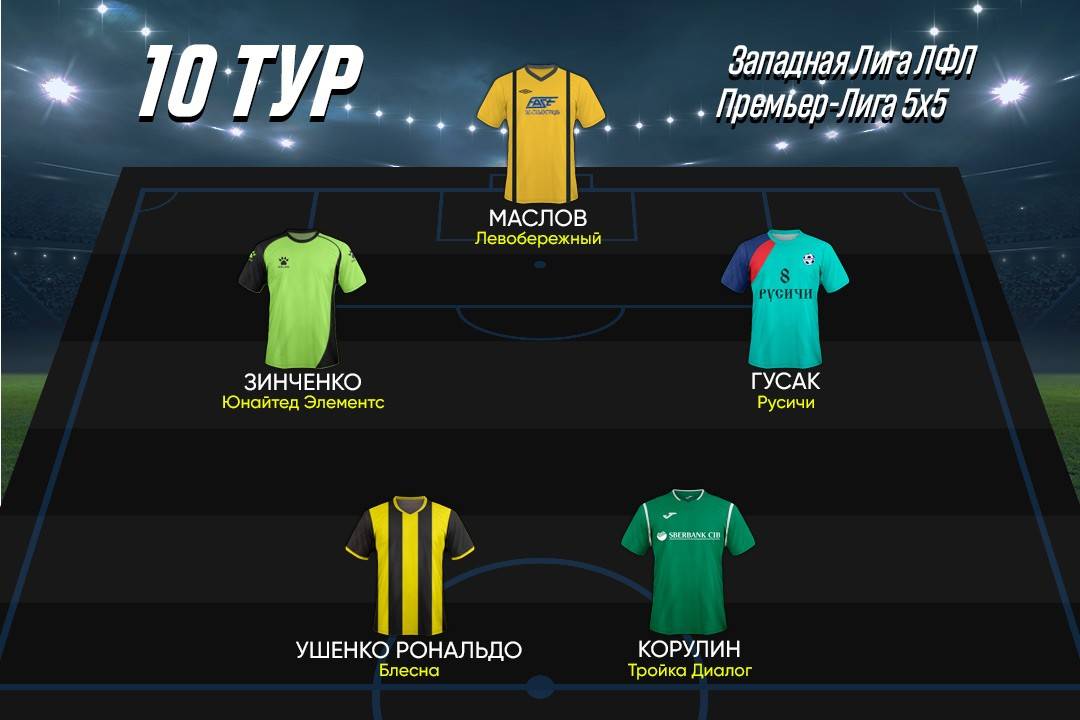По итогам 10-го тура символическую сборную из пяти игроков составили: