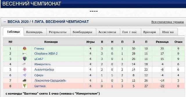 «Балтика» утром в день игры оповестила оргкомитет соревнований о том, что не сможет собраться на игру с «Измерителем». Как итог – техническое поражение и минус 1 очко в таблице. «Измеритель» набирает 3 очка, не выходя на поле.