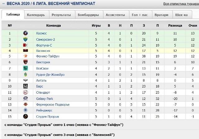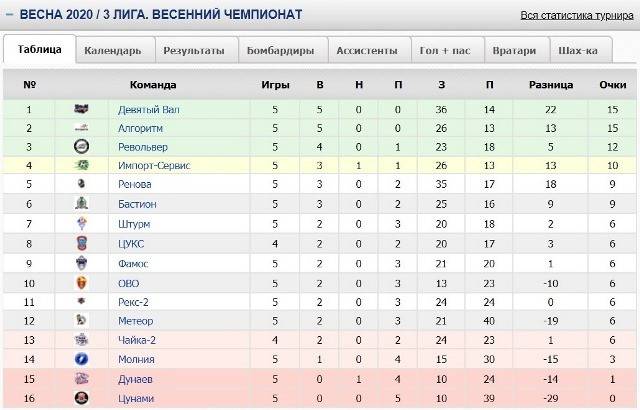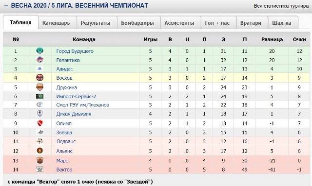 Среди бомбардиров продолжает лидировать Угрюмов («Бастион») с 13 голами. Вслед за ним идёт Боднарь («Ренова») – 12 мячей. Ещё у 4 игроков по 9 точных удара.