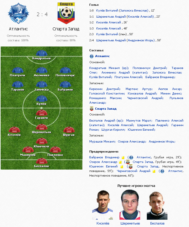 Спарта остаётся на 4-ом месте в турнирной таблице и может продолжить борьбу за призовую тройку. Футболисты Атлантиса же остались на 3-м, упустив возможность забраться на 1-ю строчку.