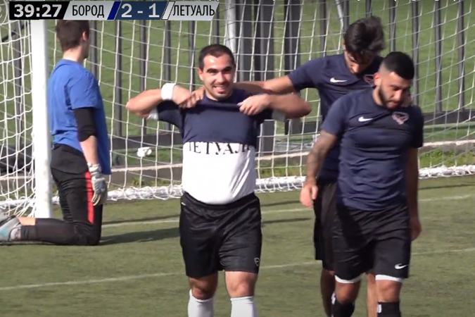 Обе команды бросились к Евгению Губину, чтобы доказывать свою правоту, ведь факт наличия/отсутствия гола на столь поздней минуте мог стать определяющим. И тут в дело вступила «комиссия» по просмотру видео-повтора. В комментаторской рубке на этот момент находилось сразу пять человек: ваш покорный слуга, а также Михаил Меркулов, Дмитрий Ершов, Илья Лукьянов и, более того, наш президент Д.Ю. Смирнов. Все мы «спонтанной комиссией» скучились у мониторов и стали просматривать повтор, увеличивая и приближая картинку. Вердикт был однозначным: мяч в ворота зашёл и буквально «прошил невод». Парламентёром был мгновенно назначен Дмитрий Ершов, и именно он кричал арбитру Губину в комментаторское окошко второго этажа: «Женяяя, в сетке дыра! Гол быыыл! Ставь на цееентр!»