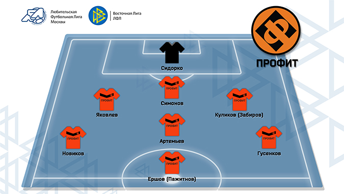 Через три минуты Дмитрий Стулов, забивший роскошный мяч «Коньково» в последней встрече, упустил сразу два стопроцентных момента. В «Усадьбе Банной» угроза может исходить от кого угодно. Тот же Стулов и Орлов, будучи крайними защитниками, регулярно участвуют в атаках команды. А что же «Профит»? Подопечные Кирилла Степанова пытались забрать мяч себе, но безуспешно. Контратаки организовывать было по-прежнему проблематично. На 24-й минуте Стулов, Овсянников и Караваев могли внести мяч в ворота Сидорко, но не сумели этого сделать. А чуть позже им помог соперник. Прострел Спицина прервал Алексей Новиков, срезавший мяч в собственные ворота – 2:0. С таким счетом и завершился первый тайм.