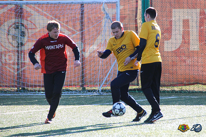 Обе команды взяли быка за рога немедленно. Чуть активнее начали «Нижгары», стараясь взять мяч под свой контроль и развивать позиционные атаки. Но «ДИСА» достаточно крепка, чтобы этому противостоять, а в нападении есть мастера удара и паса. Так, Сергей Данилин в дебюте встречи дважды пробил издали, и после второго выстрела Беляйкин и Глушко отбивались коллективными усилиями. А в середине первого тайма помощь пришла от Варакина. Артем пробил прямо от своей правой бровки, и мяч влетел точно в ближний угол ворот – 0:1! Сразу после этого момента Кирейчик очень резко высказался в адрес арбитра и получил красную карточку. «ДИСА» получила прекрасный шанс развить успех в течение десяти минут, пока номинальные хозяева будут играть в меньшинстве. Но процент брака в передачах в эти минуты у «черно-зеленых» зашкаливал, да и с активностью были проблемы. А Пивоваров мог забить ответный мяч, но пробил сильно и точно в Миронова. В итоге первый тайм так и завершился – 0:1.
