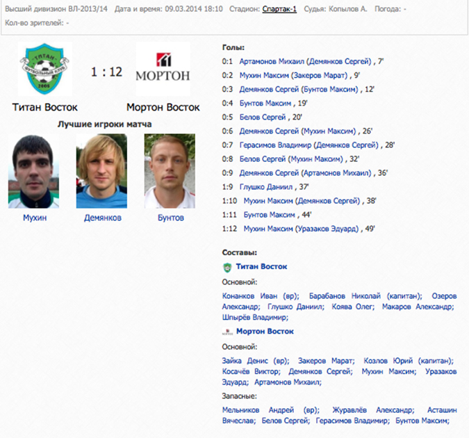 1:12 с хет-триками Мухина и Демянкова и дублями Белова и Бунтова. Надо ли напоминать, на каком месте остается «Мортон» после этого тура?
