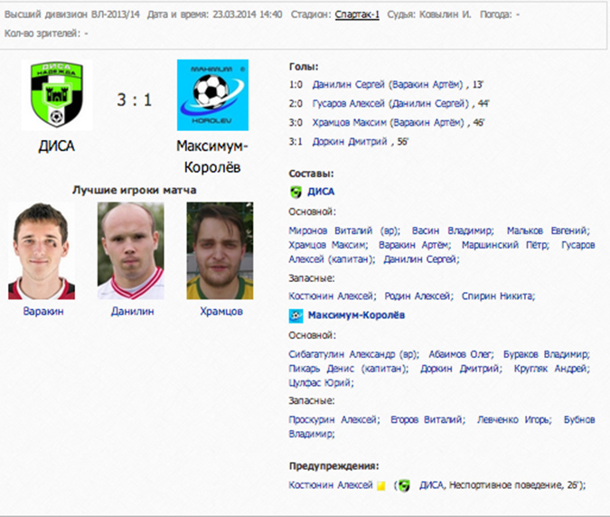 1:2 – победа «ДИСы», которая возвращается на шестую строчку в таблице, по пятам преследуя разыгравшееся «Коньково».