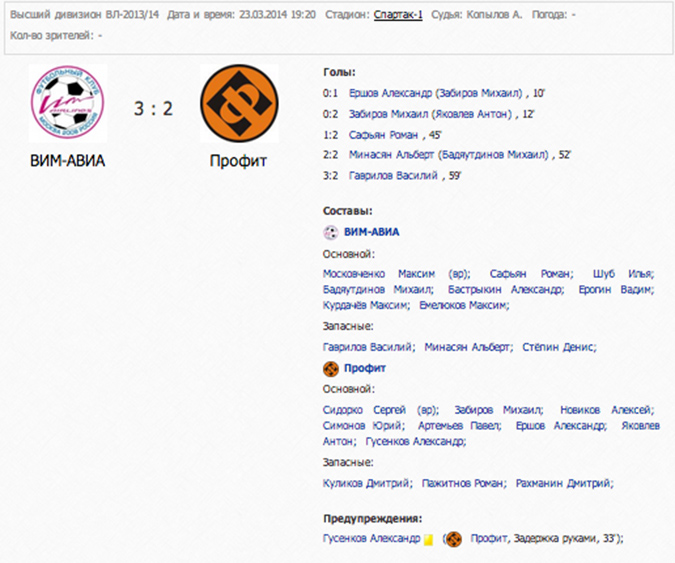 Матч тура! Сборная РМА – ВИМ-АВИА – 2:0 (на обзор матча тура)