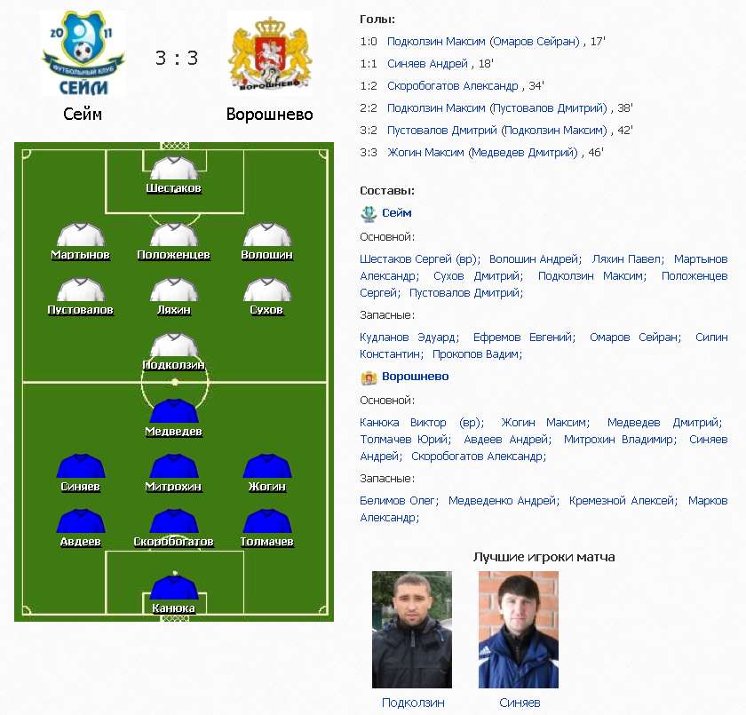 Сейм и Ворошнево завершили матч результативной ничьей- 3:3.
