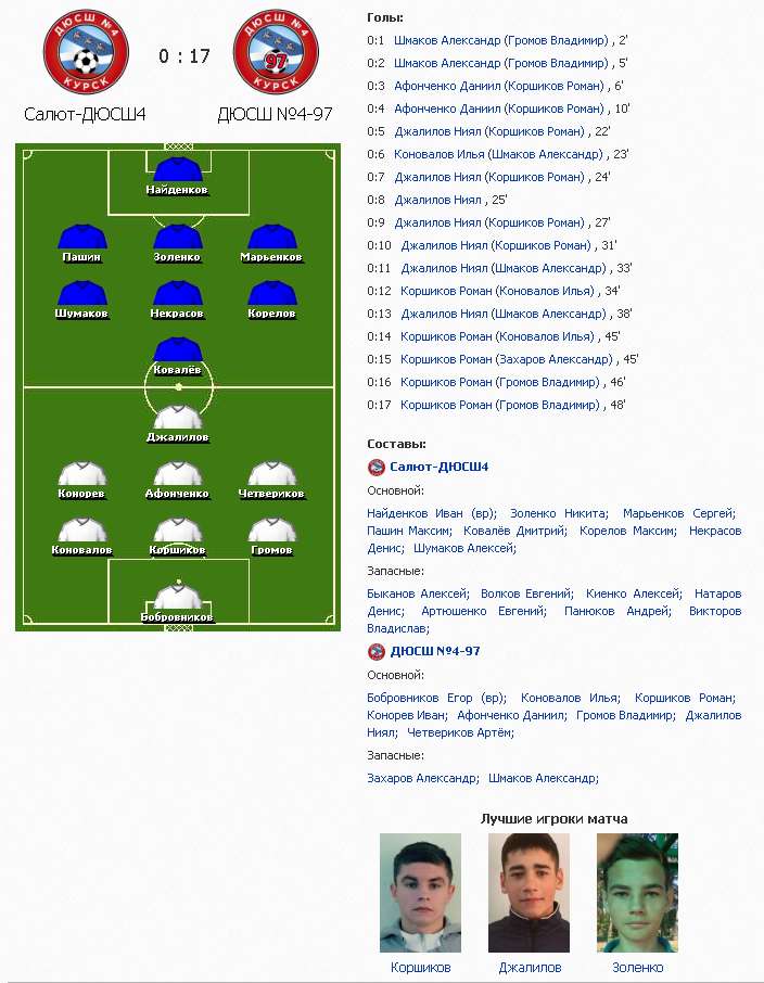Салют-ДЮСШ4 был уничтожен ДЮСШ№4-97 17:0.