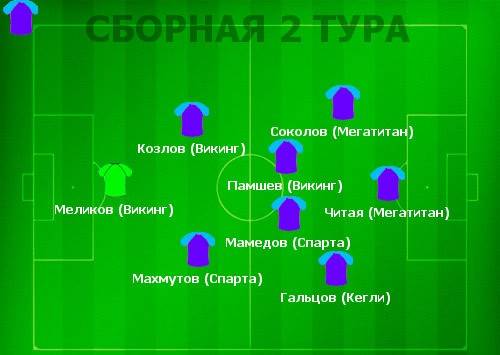 О действиях на ленточке собственных ворот Александра Бердинского уже было сказано в разделе «Матч тура». Голкипер действительно продемонстрировал блестящую игру. Кроме сумасшедшего двойного спасения в первом тайме после углового, взятого намертво пенальти в концовке и просто уверенной игры, Бердинский во втором тайме при счёте 0:0 ещё и успел выбросить ногу и отразить удар в ближний угол после прорыва по левому флангу в исполнении Михаила Стукалова. Всего этого более чем достаточно, чтобы назвать вратаря «Ист-Эф-Си» лучшим в туре. Старожил первого дивизиона «Волна» не без труда справилась с дебютантом первой лиги «Фортуной» (2:1), и большая заслуга в этом принадлежит защитнику Максиму Крюкову. Достаточно просто всё и с полузащитником и нападающим тура. Речь о них уже шла в этом материале. Роман Бессонов и Дмитрий Павлов решили исходы стартовых встреч в пользу своих команд, и именно они примеряют виртуальные лавровые венки и могут позволить себе по бокалу амброзии.