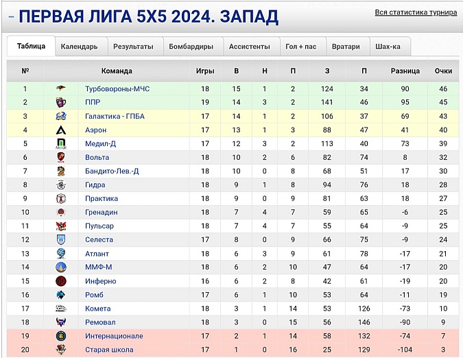 Турнирная таблица.